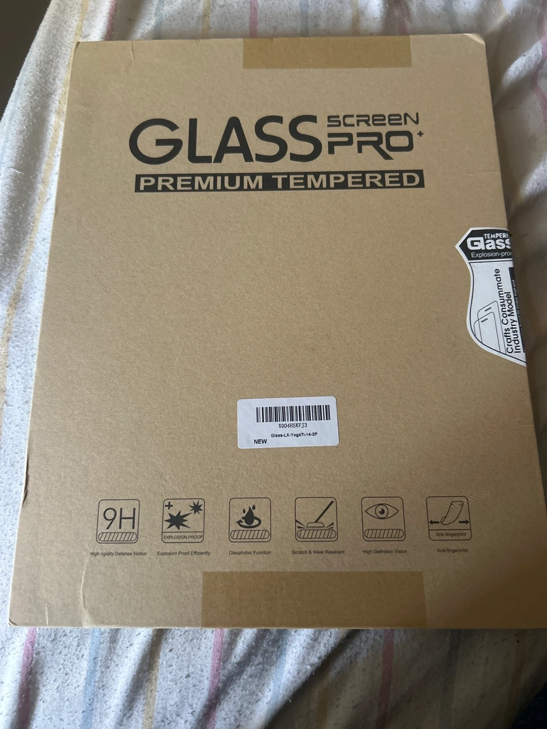 65Selling a brand new Glass Screen Pro premium tempered glass screen protector. It features 9H high rigidity defense friction, explosion-proof efficiency, oleophobic function, scratch & wear resistance, high definition vision, and anti-fingerprint technology. The dimensions are approximately 12 inches by 8 inches Two glass pieces per box