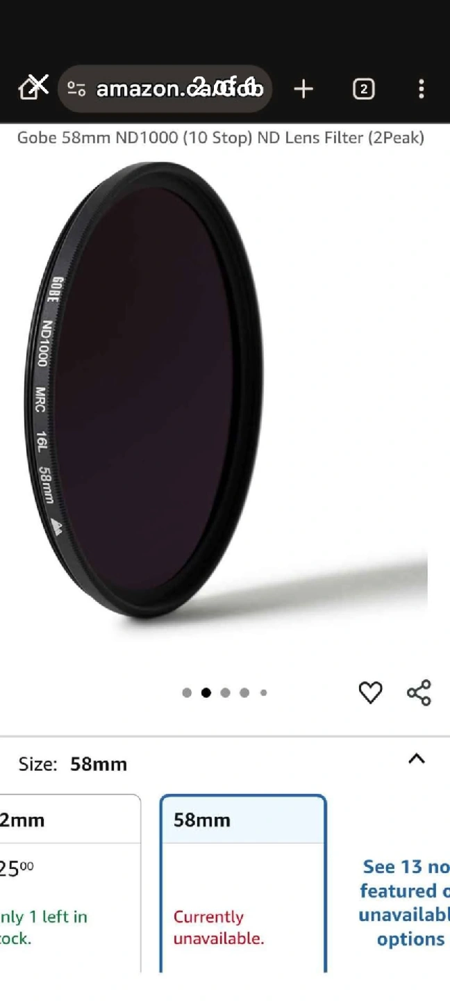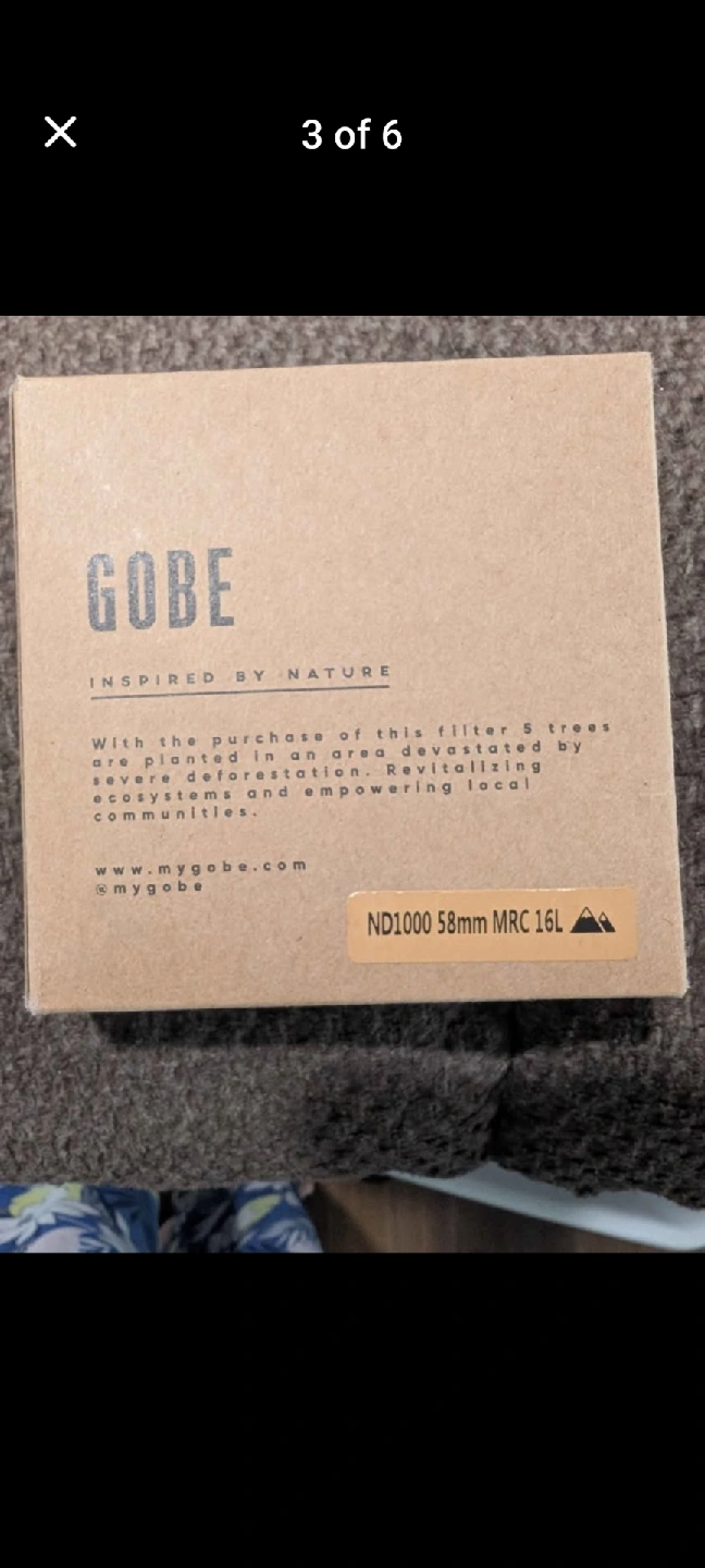 Selling a brand new Gobe 58mm ND1000 (10 Stop) ND Lens Filter. This filter is still in its original box and has never been used. It is a 2Peak filter with MRC 16L coating. Inspired by nature.