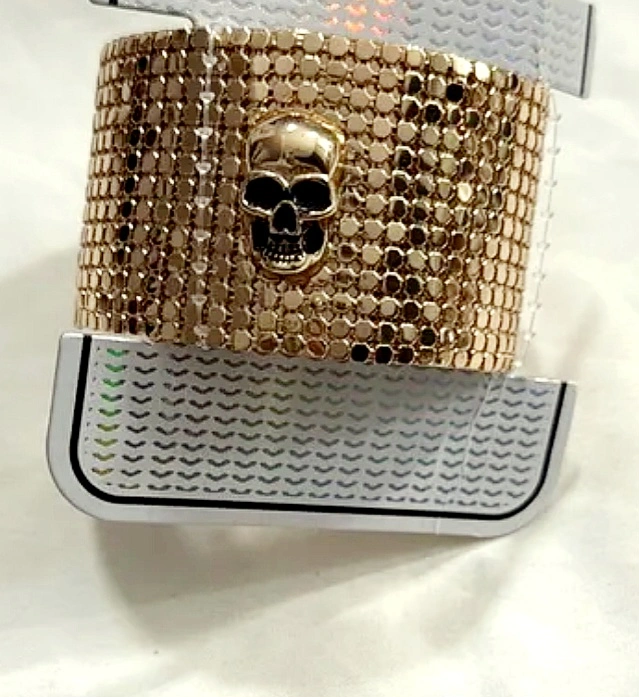New Gold-Tone Mesh Cuff Bracelet with Skull