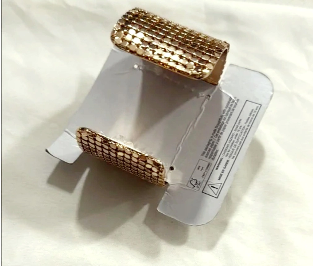 New Gold-Tone Mesh Cuff Bracelet with Skull Add a bold edge to your look with this stunning gold-tone mesh cuff bracelet, featuring a striking skull embellishment in the center. Gold-tone mesh design — stylish, durable, and eye-catching. Skull centerpiece adds a unique, edgy flair. Comfortable open cuff style — easy to wear and adjust. Perfect for casual wear or to elevate your night-out look.