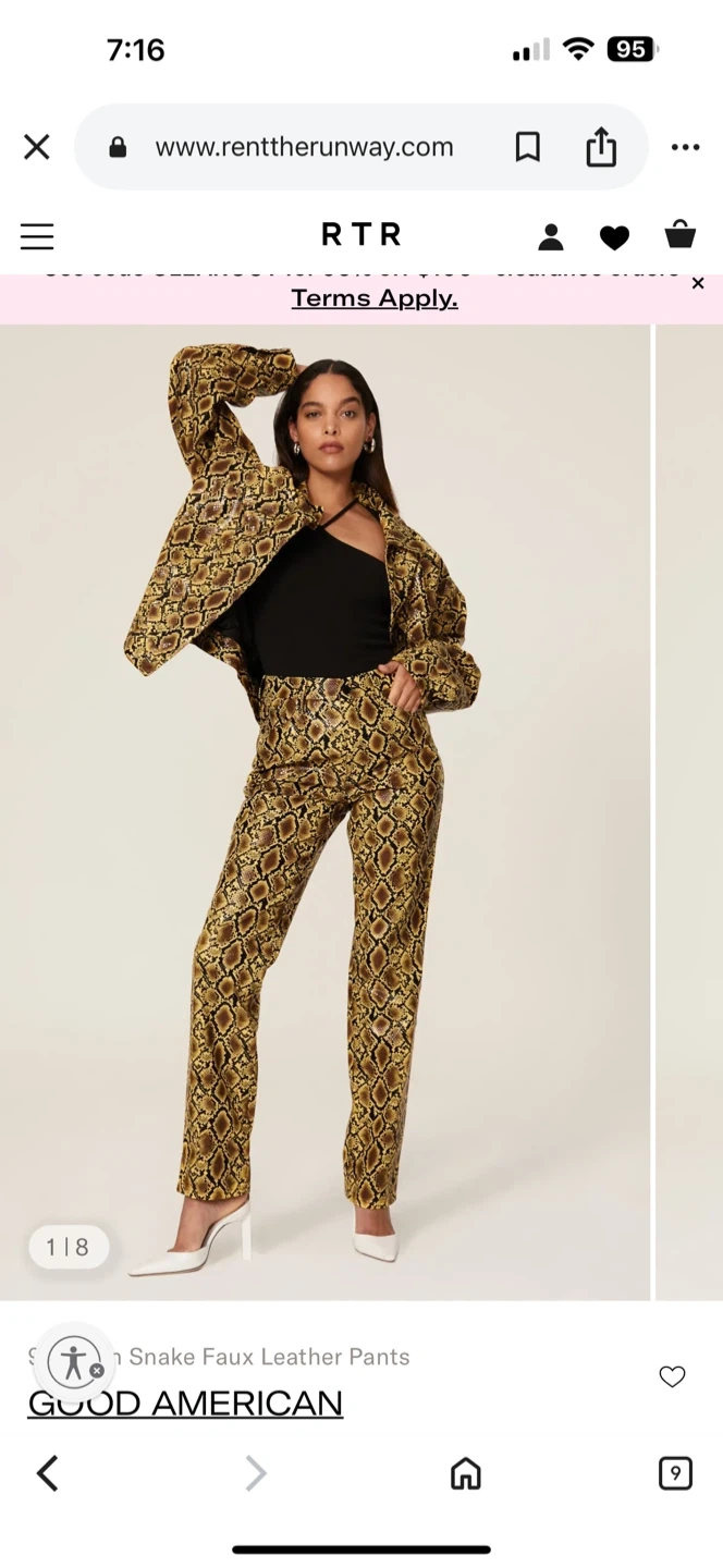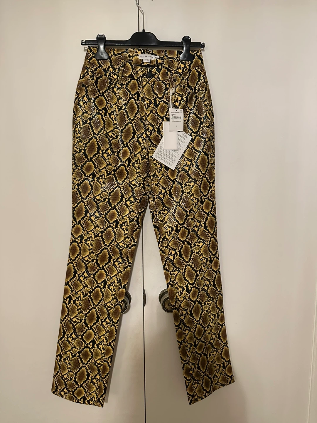 23These Good American pants feature a unique snake print design! They're made of faux leather Perfect for adding a statement piece to your wardrobe! Size:0/25 Color: Golden Snake