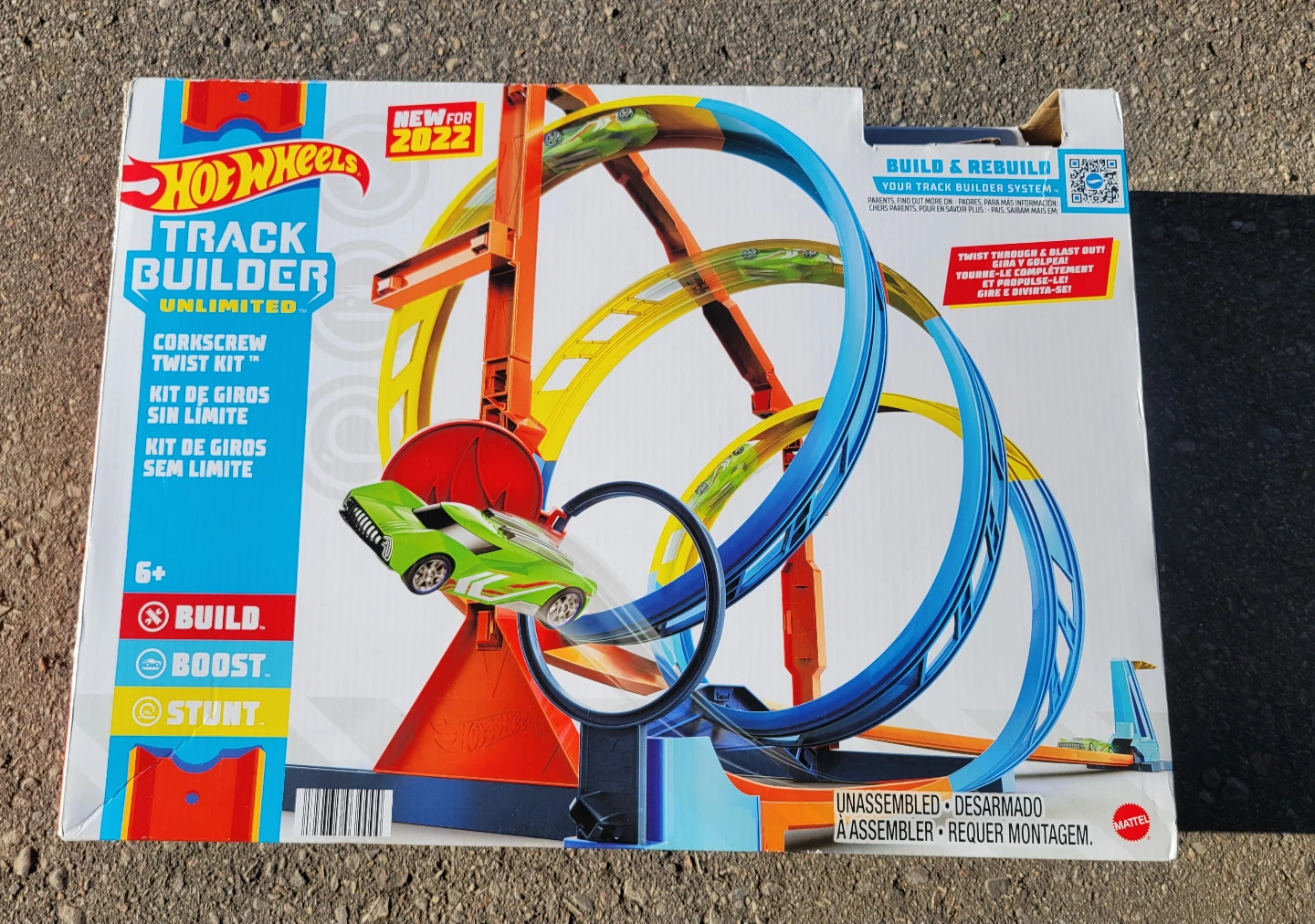 107New . Build and rebuild your track. Includes corkscrew twist kit. For ages 6+. Build, boost, and stunt. Will make great xmas gift!