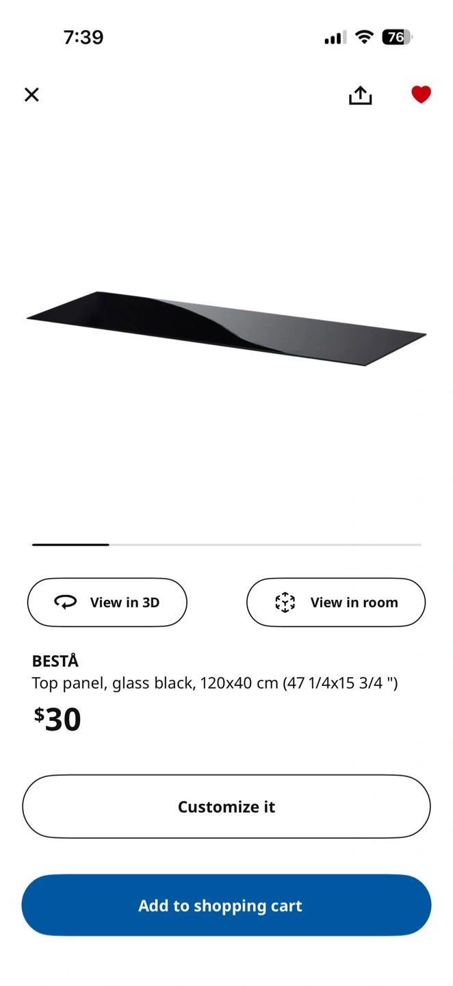 NEW IKEA BESTA Top Panel - Glass Black
