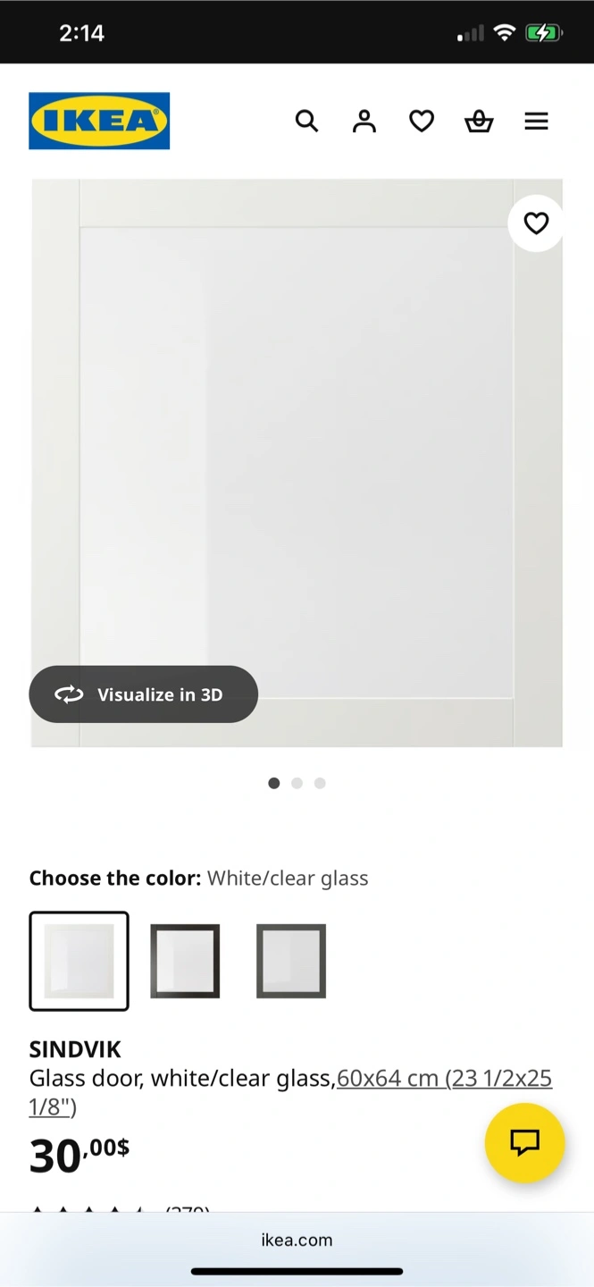 Selling an IKEA SINDVIK glass door in white with clear glass! It's sized at 60x64 cm (23 1/2x25 1/8"). This door originally retails for $30. Box included! $15 each 6 avalable