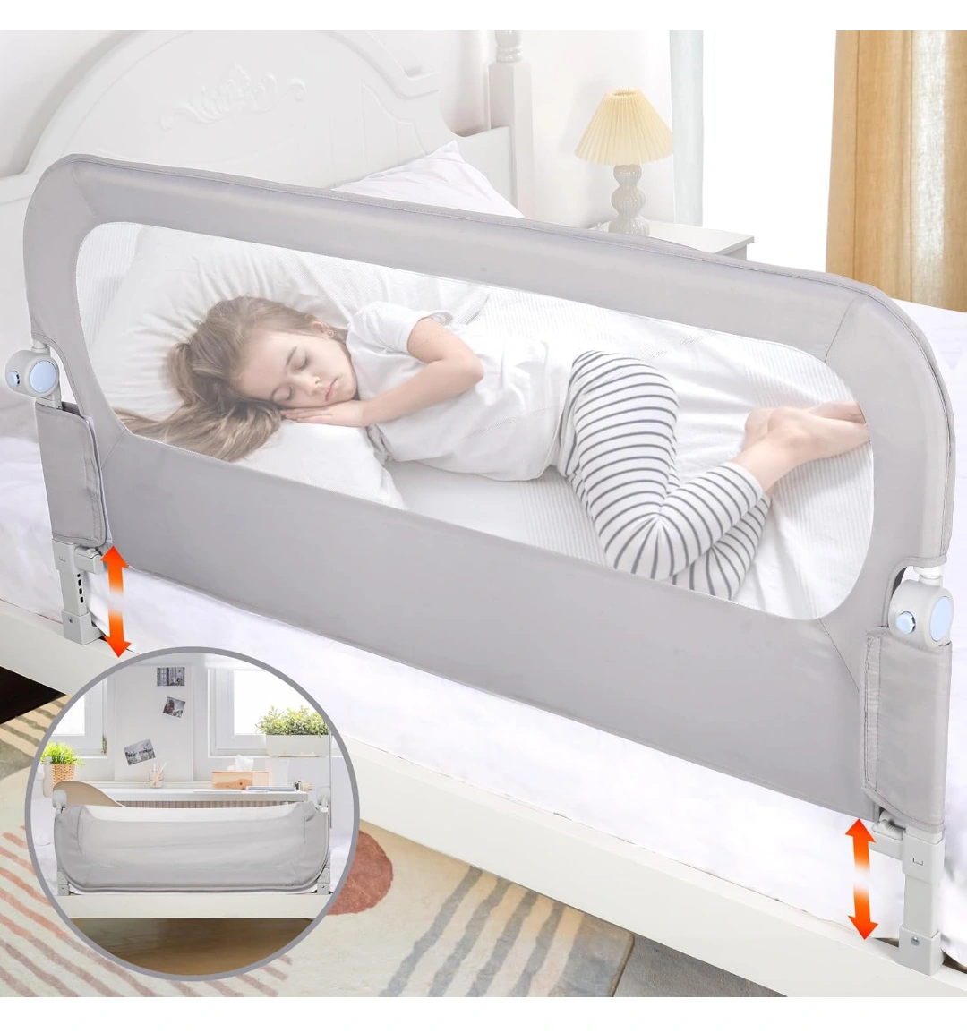New Open Box NUTIKAS Baby Bed Rail Guard for Toddlers - 47" Toddler Bed Side Rails for Twin, Full, Queen Bunk Size Bed Swing Down Bedrail Extral Tall Child Safety Side Railing Guards for Kids. $25 each or take both for $40