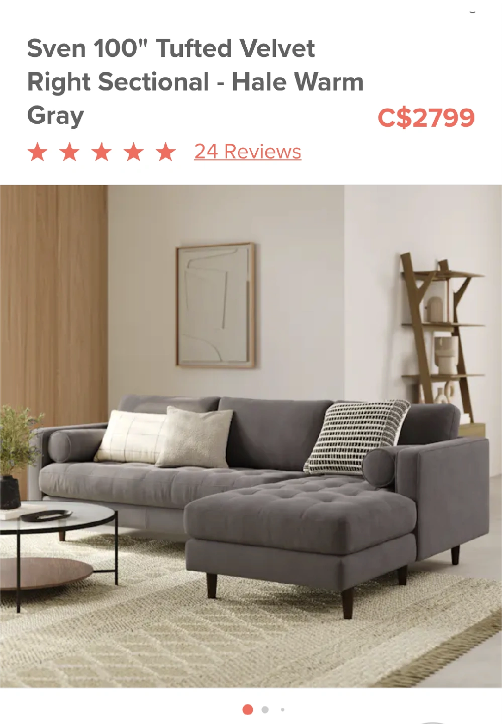 NEW Nova 114" Reversible Sectional - Gravel Gray