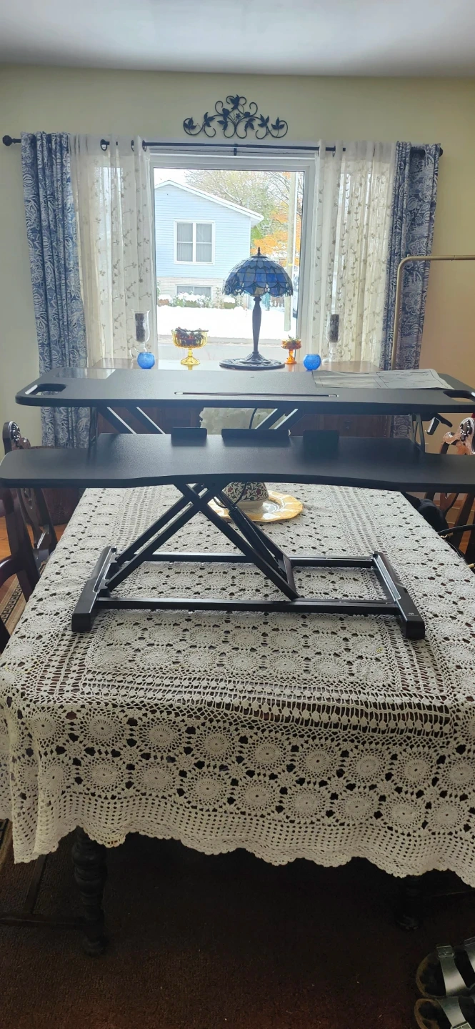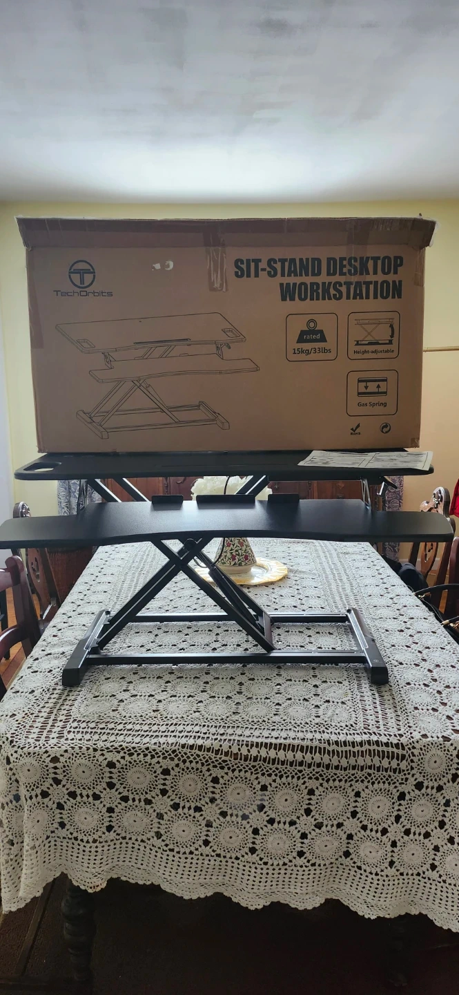 81Selling a TechOrbits sit-stand desktop workstation! It's in great shape and ready to help you work comfortably. The workstation is black and features a gas spring for easy height adjustment. It can hold up to 15kg/33lbs. Comes with the original box!