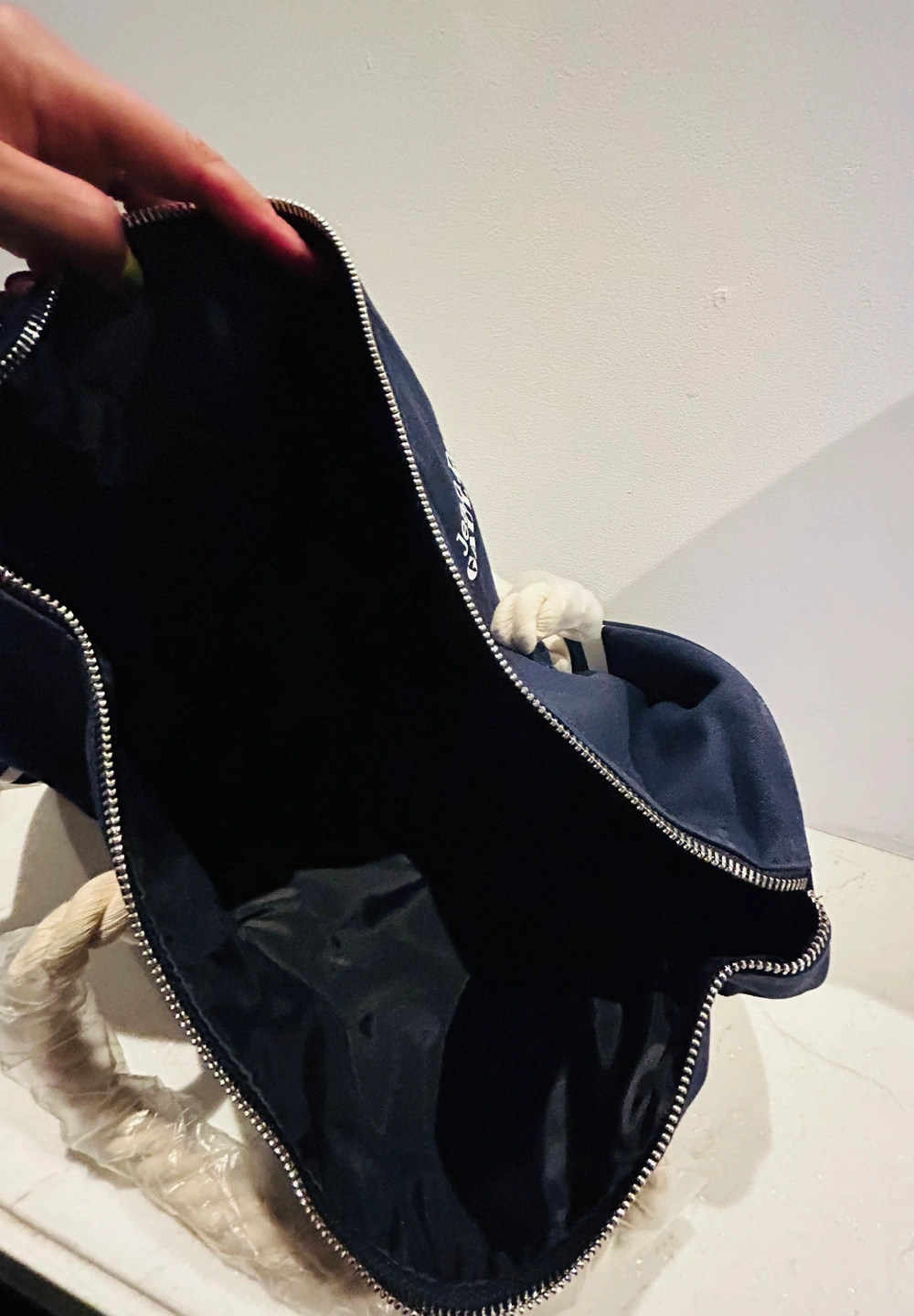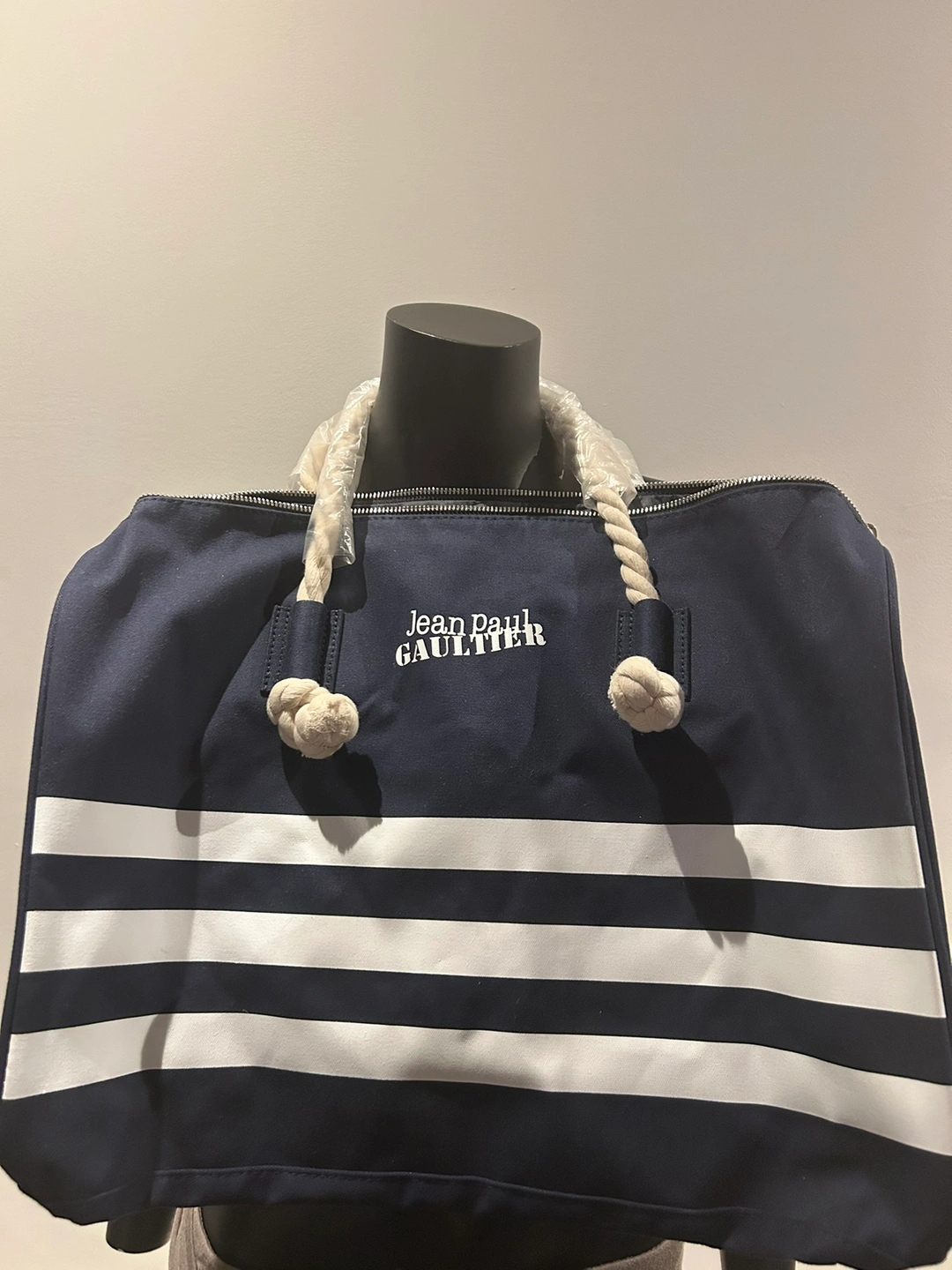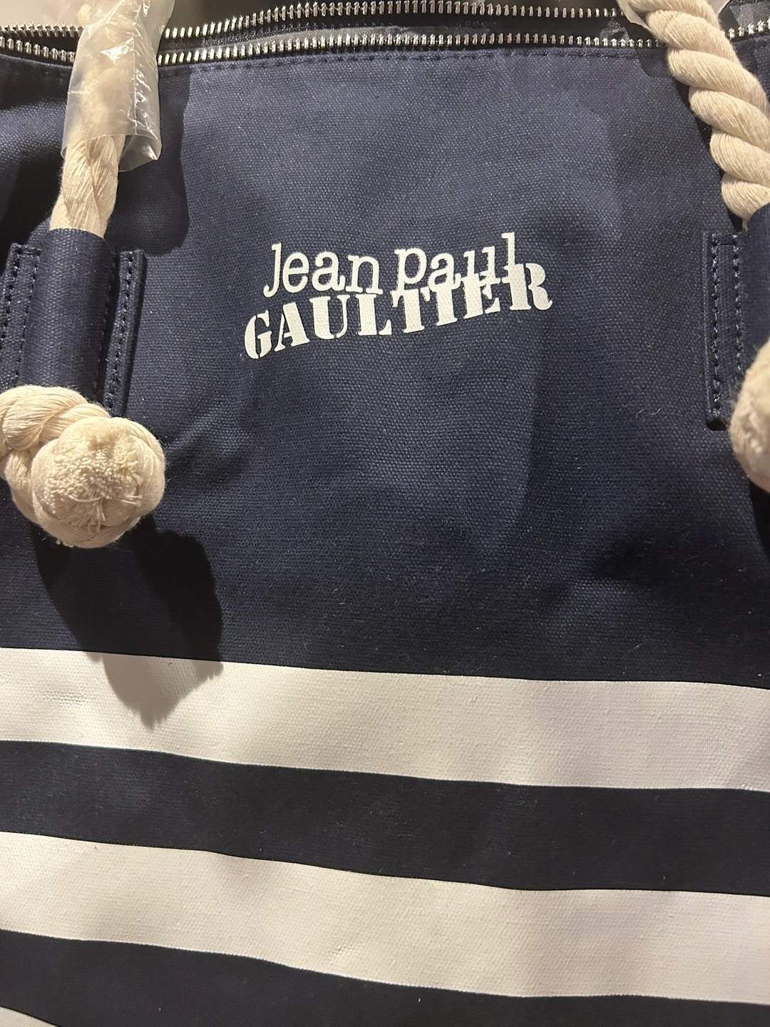 New Jean Paul Gaultier tote bag. Zipper closure. Nautical Rope style handles (but soft). New never used. Handles still wrapped in original packaging. Great for beach. Gym. Cruises ! Hanging out street style Please scroll through my listings for a great selection of designer fashion, trendy fashion, high end skincare and makeup and beautiful kitchen and homewares. Always adding new great items so please follow and take a look! Bundles: if you buy more than 2 items, I may be able to discount your bundle further, depending on the items. Please ask.