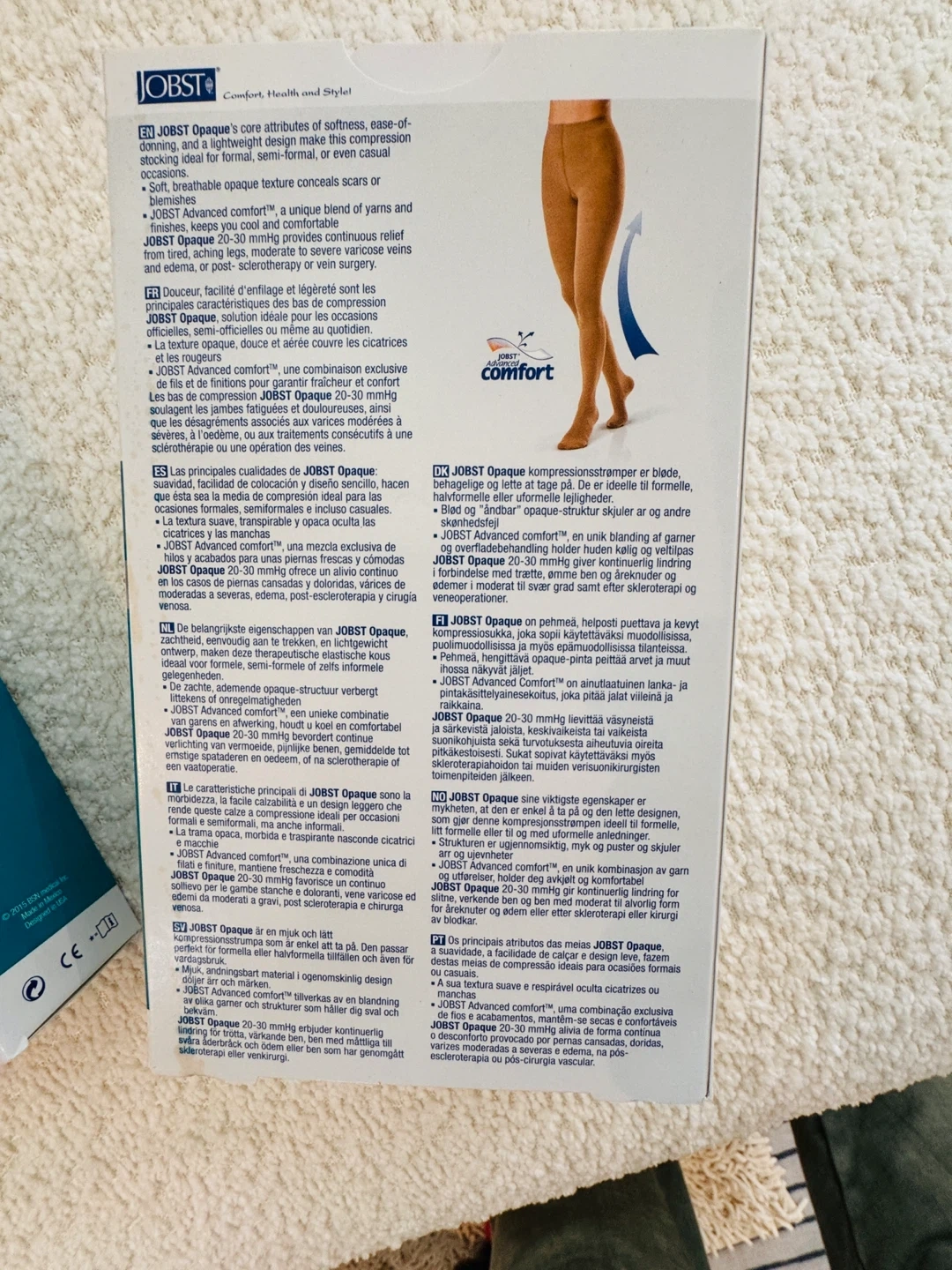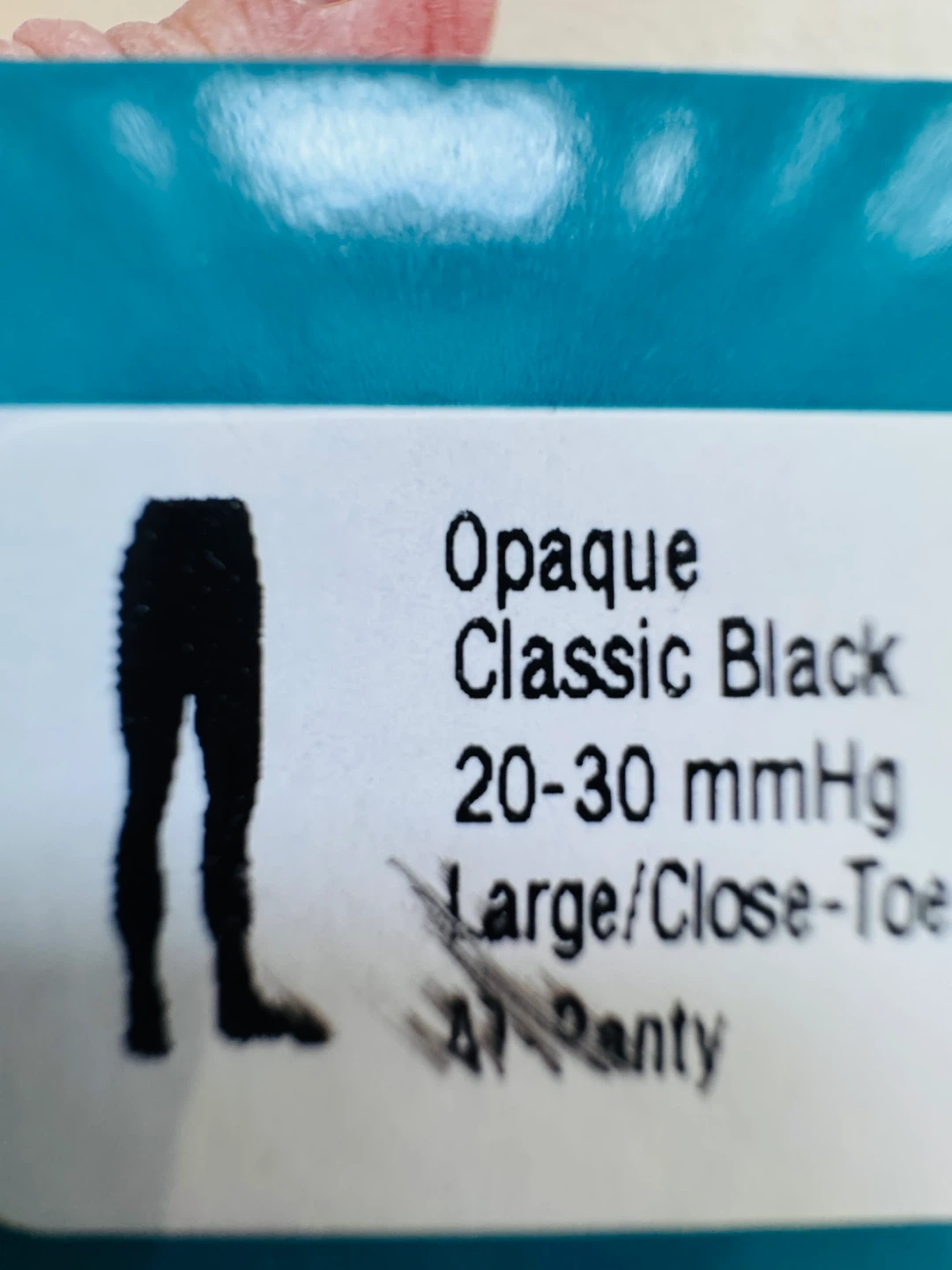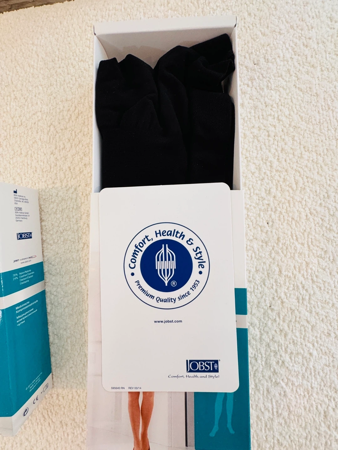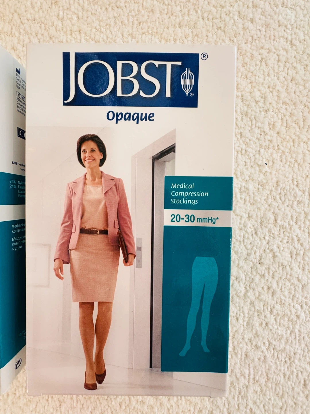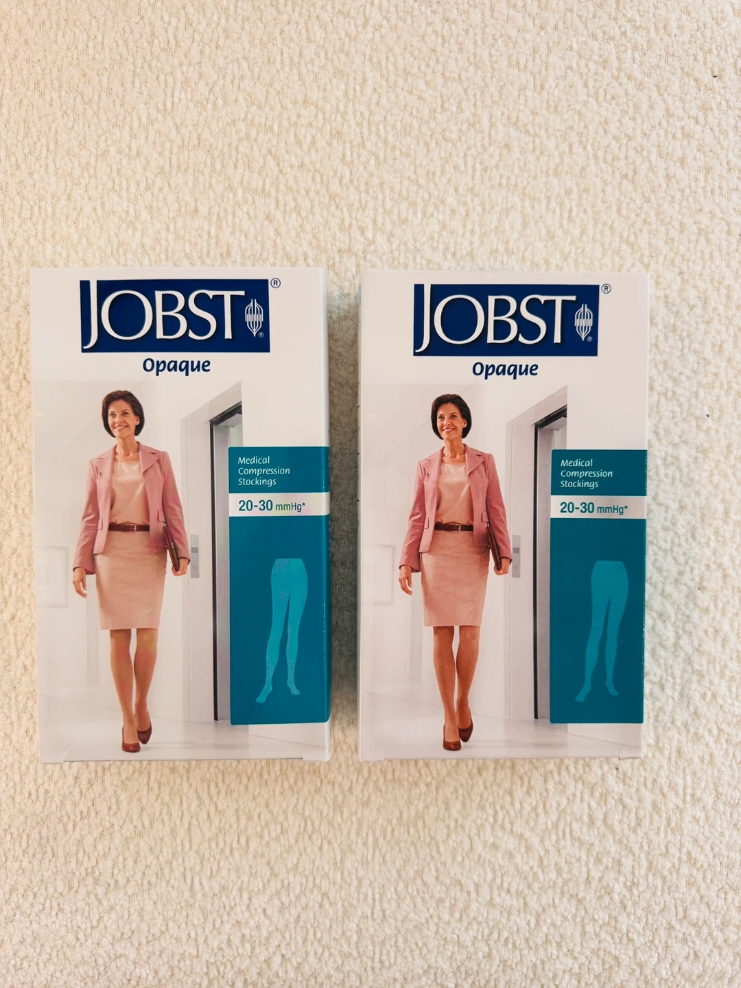 374I'm selling a pair of Jobst Opaque medical compression stockings in classic black. They are size large and close-toe. These stockings provide 20-30 mmHg of compression. Brand new in box!
