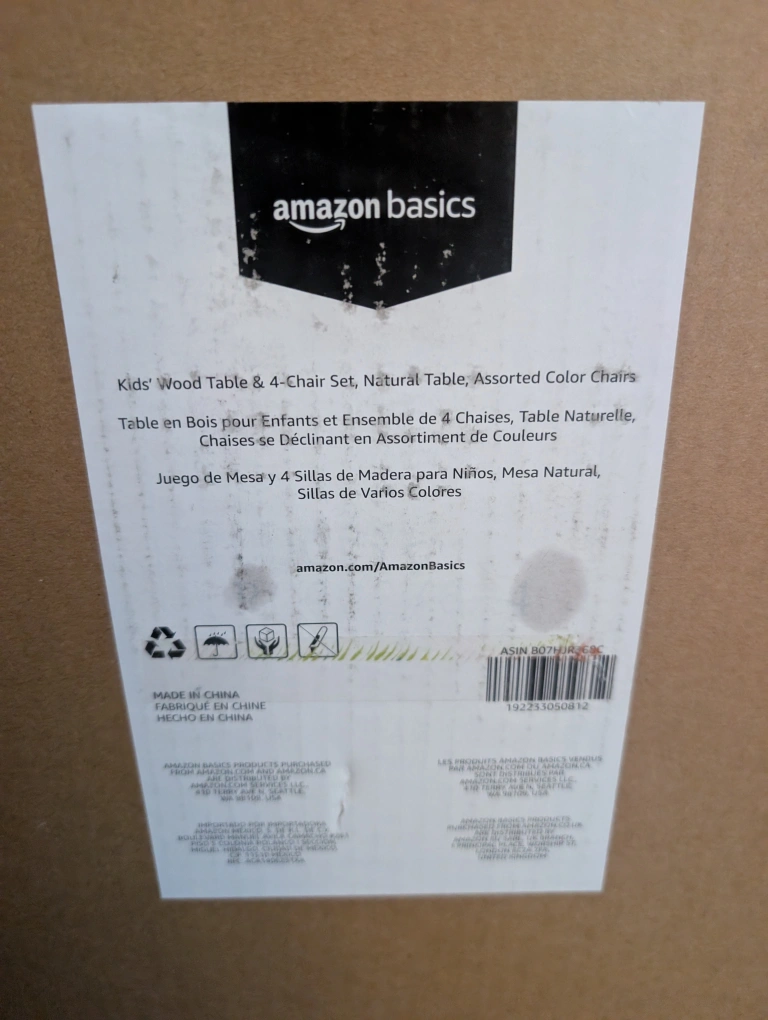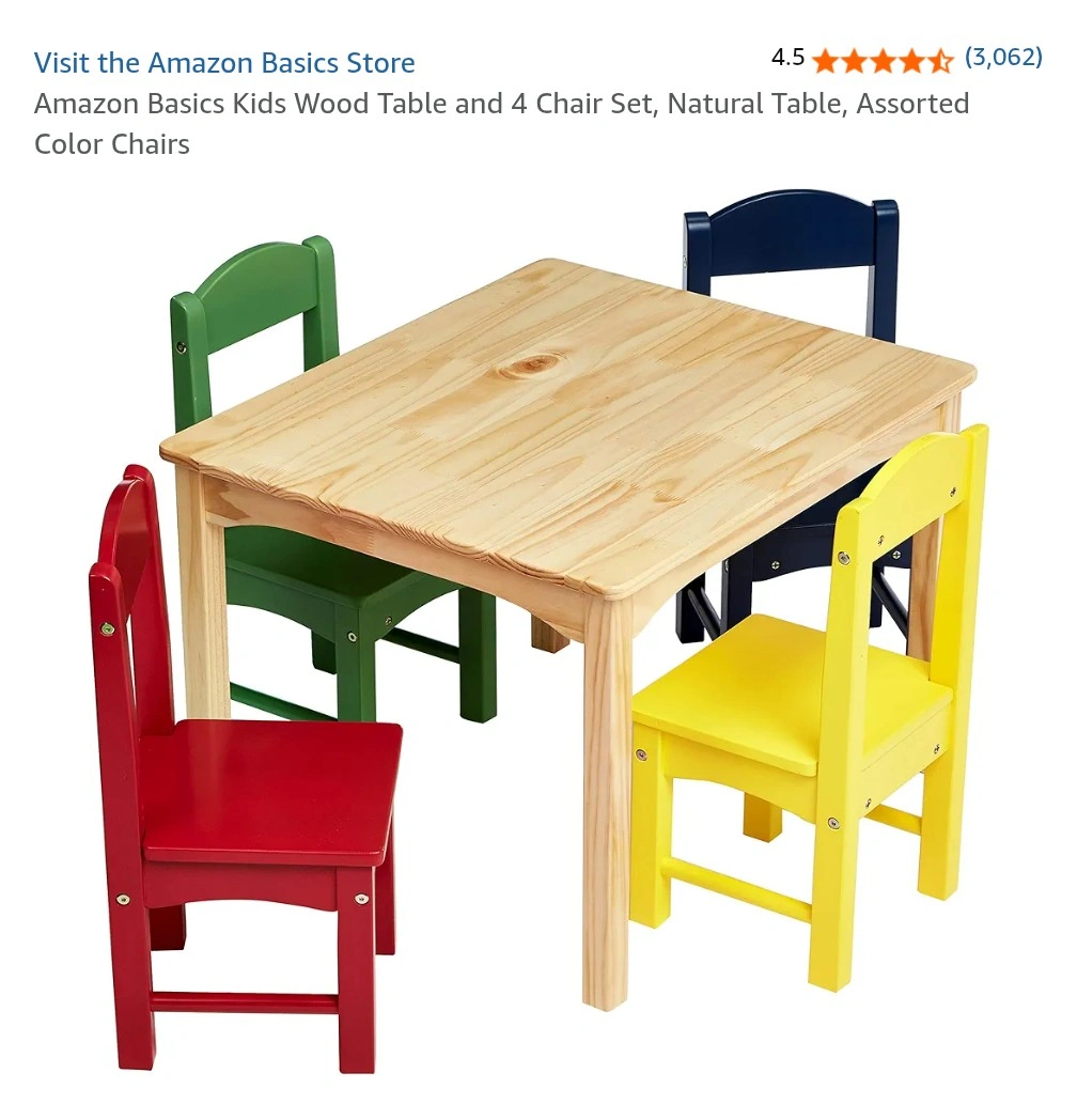 44Brand New Amazon Basics Kids Table with Four Chairs. • Kids' table for playing, eating, reading, and more • Perfect height and size for children • Includes square table and four matching chairs • Made of durable, natural solid wood • Dynamic use in playrooms, bedrooms, kitchens, living rooms, or outdoors Box only opened to verify colour. Amazon link for reviews: https://a.co/d/gkSoj5Q Retails for $175