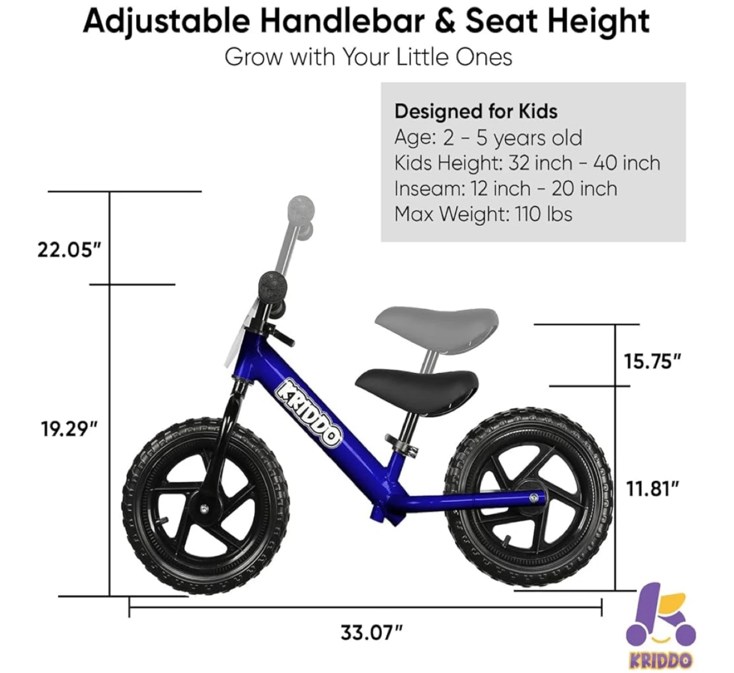 New Kriddo Balance Bike - Blue