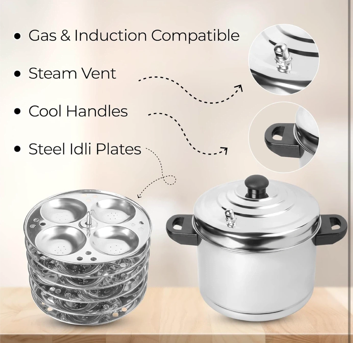 ๐ด KSJONE Stainless Steel Idli Cooker โ Makes up to 24 Idlis ๐ด โจ Features: โข Material: Stainless Steel ๐ฅข โข Whistle Indicator โ alerts when ready ๐ โข Compatible with: Induction, Gas Stove, Electric Pot, Instant Pot ๐ฅ โข Plates: 6 Idli Plates โ makes up to 24 idlis ๐ โข Food Grade Stainless Steel โ safe and durable โ ๐ก Perfect for soft, fluffy idlis at home! Ideal for families, parties, or meal prep. ๐ Condition: Brand New