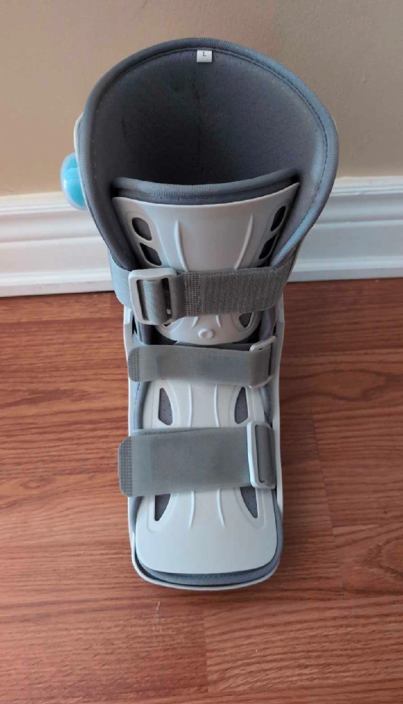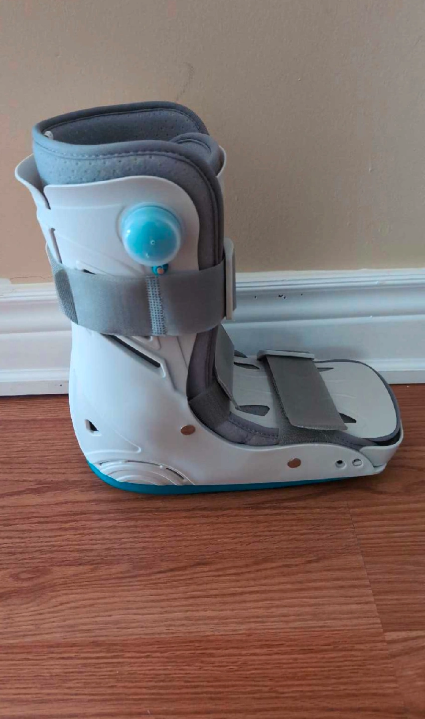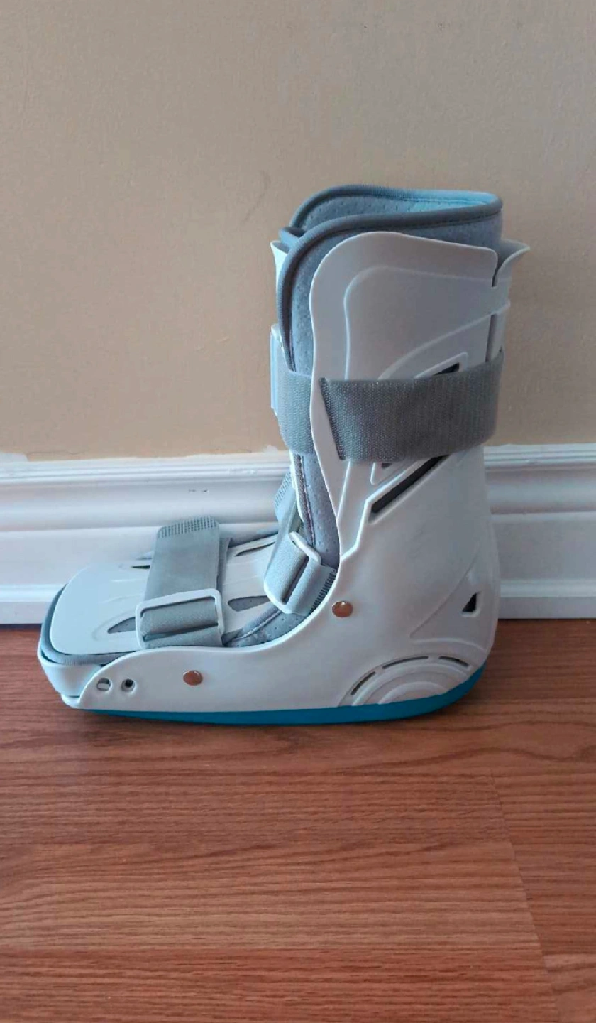 91Open to offers This is a new, large air cast boot designed to provide support and stability for ankle and foot injuries. The boot features an adjustable air bladder system for customized compression and a rocker sole for a natural gait. Never been worn and in perfect condition. Specifications: * Size: Large * Condition: New * Type: Air Cast Boot If the ad's still up, the boot's still here,