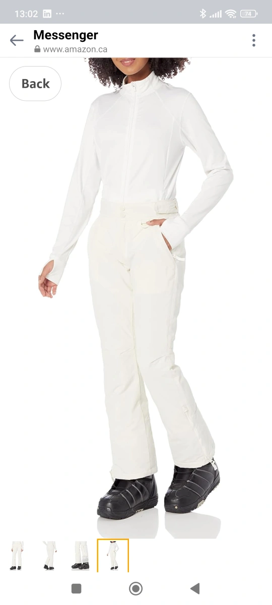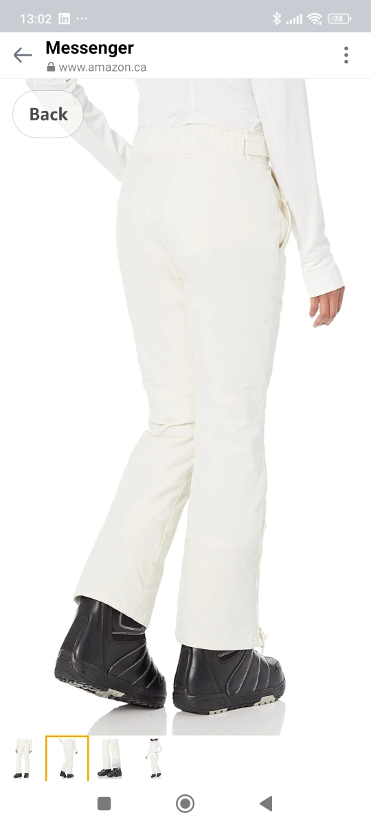 89New Large Amazon Essentials insulated white snow pants lightweight water resistant woven fabric high-waist adjustable waist
