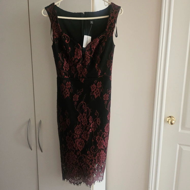 10This is a beautiful Le Chateau dress in size 11P/XXS (fits more like a XS or size 0-2) It features a lovely black and burgundy lace design. It''s in new condition with the tags still attached! Perfect for a special occasion or party! Retailed at Le Chateau for about $125 in store. Open to offers, meet up in Mimico OR Markham (may need a few days to meet)