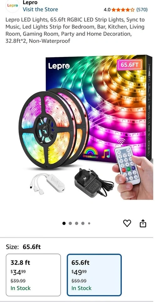 New, open box, Lepro LED Lights, 65.6ft RGBIC LED Strip Lights, Sync to Music, Led Lights Strip for Bedroom, Bar, Kitchen, Living Room, Gaming Room, Party and Home Decoration, 32.8ft*2, Non-Waterproof Retails for $49.99 on sale on Amazon Asking $25 Pick up near Coxwell and Danforth