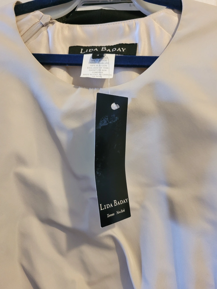 170Selling a new beautiful Lida Baday asymmetric shift dress in size 4! The dress is made with 100% silk and is made in Canada. Original price $795!