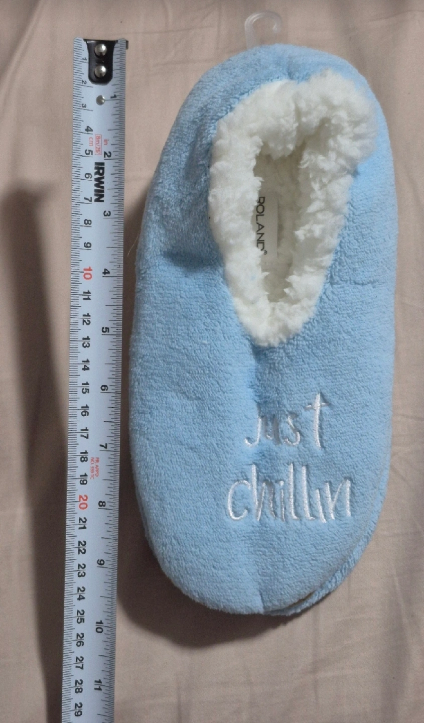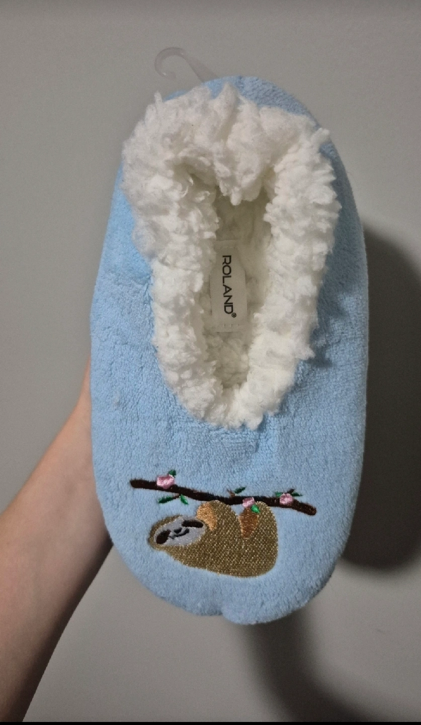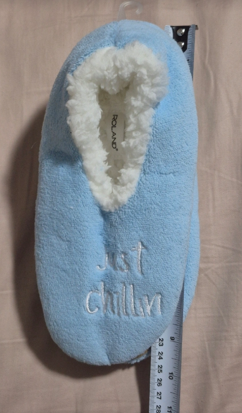 Cozy up with these super comfy Roland slippers! They're a soft blue colour and feature a cute sloth design on one slipper and 'Just Chillin'' embroidered on the other. Perfect for lounging around the house this upcoming winter or as a Christmas gift or stocking. Smoke/pet/420/kids/everything free home.