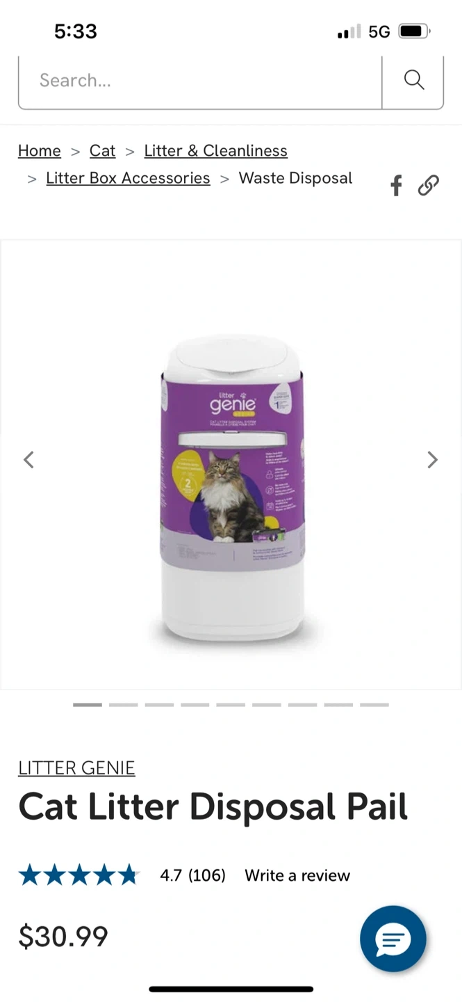 Amazon Price $39.99 Keep your home tidy with a Litter Genie cat litter disposal pail! It helps lock away odours and makes daily scooping a breeze. Includes a scoop and scoop holder for easy use, plus a jumbo refill that lasts for up to 4 months