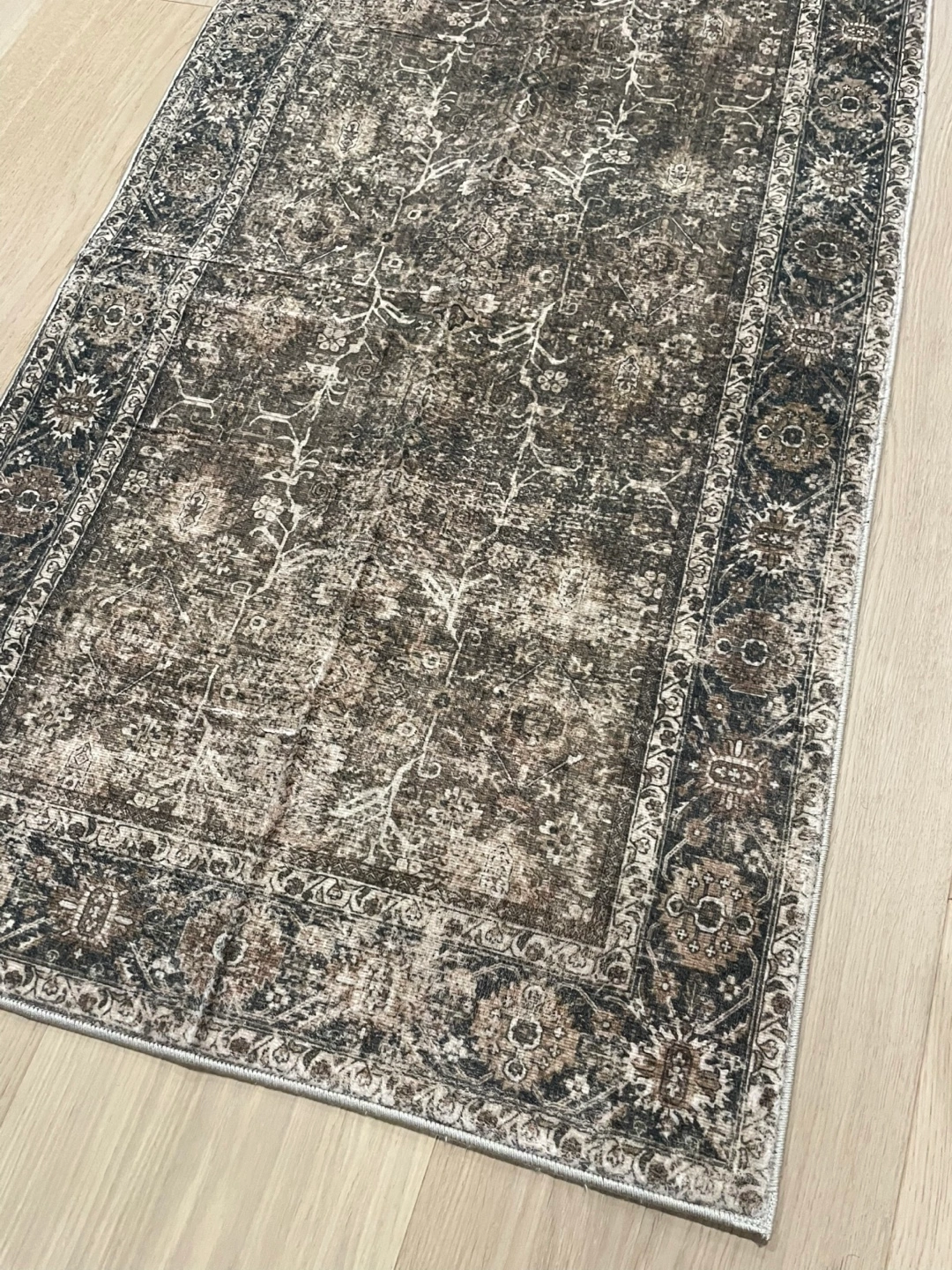 New! Long 2’x7’’ Runner. Soft. Machine-Washable w Padded Anti-Slip Backing. Taupe/Brown/Charcoal. $30 firm Smoke-free & Pet-free home.