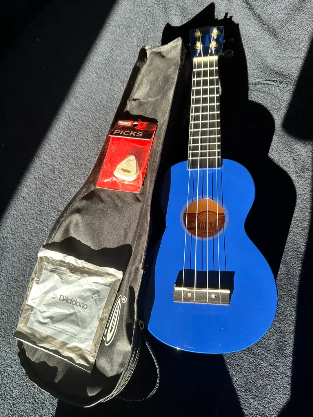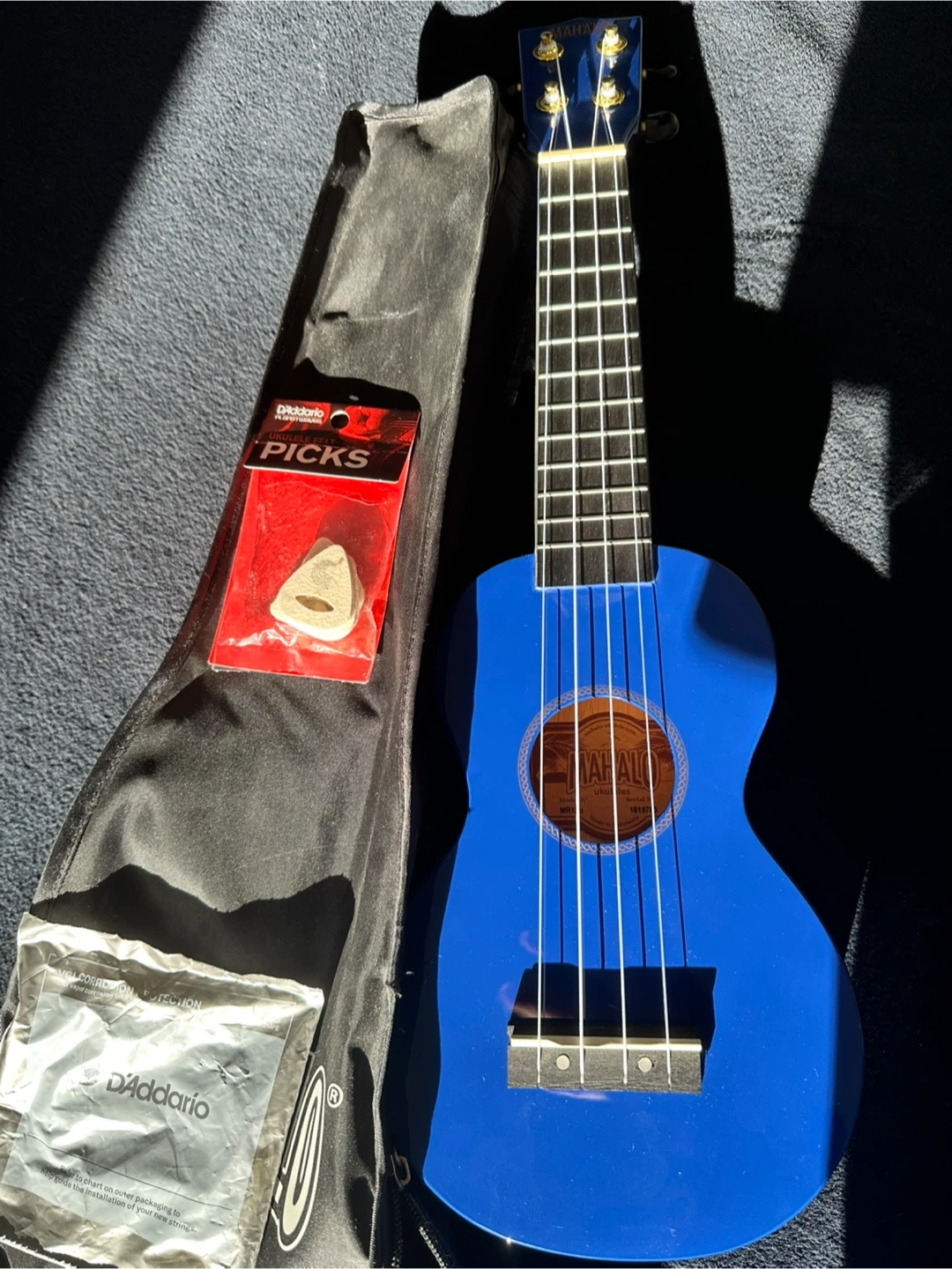 57Selling a vibrant blue Mahalo ukulele! It comes with a set of D'Addario picks to get you started. Perfect for beginners or anyone looking to add a splash of colour to their music