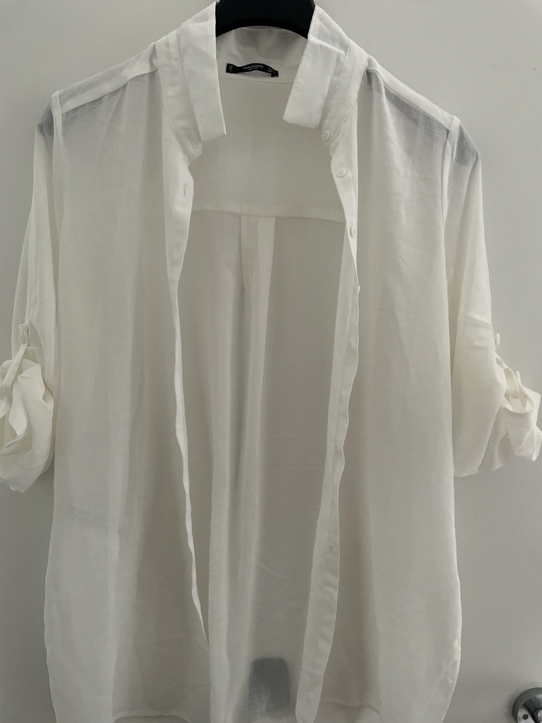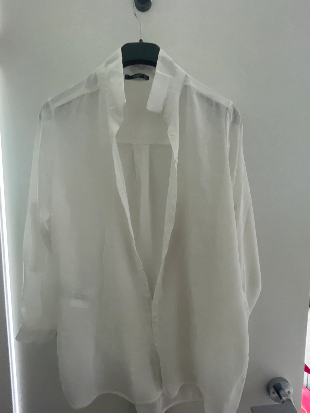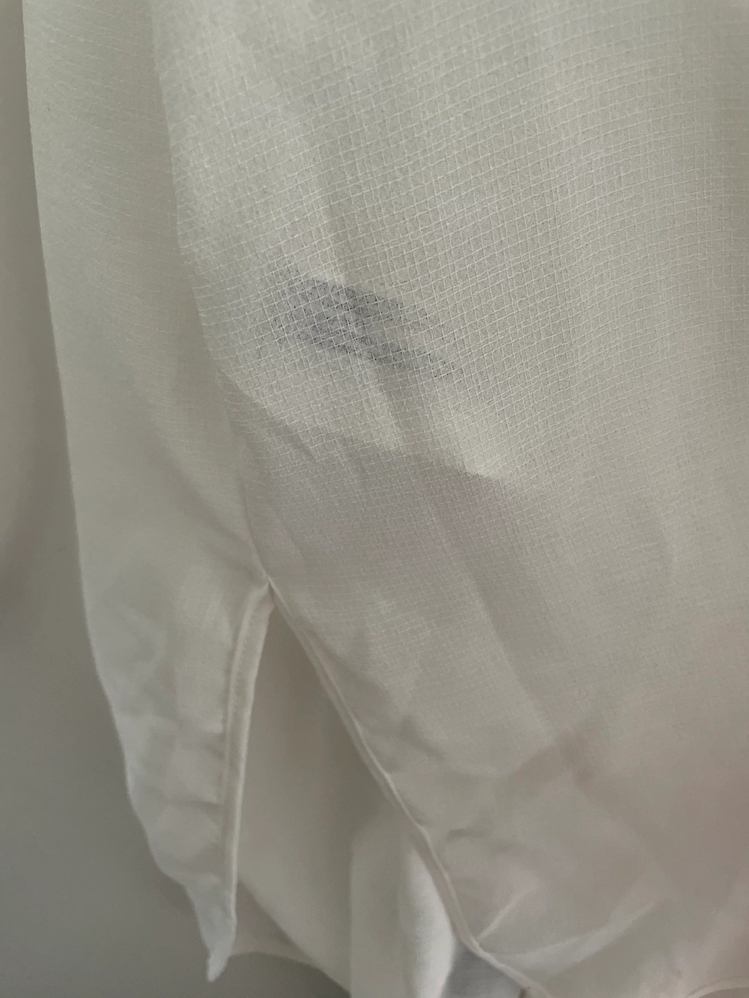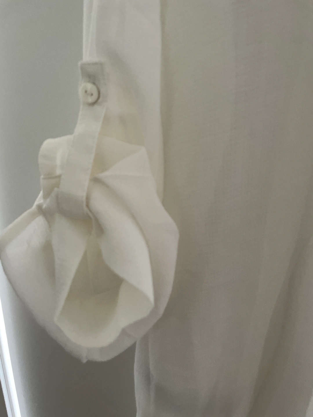 607Could for for XL. Lightweight white blouse. Three-quarter sleeves. Button-down closure. Size Large. Made in China.