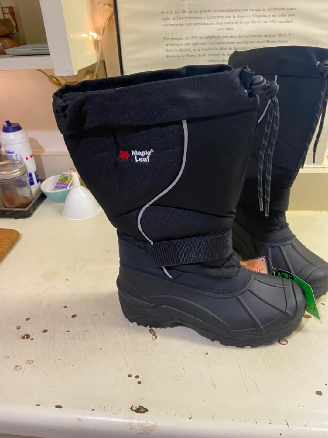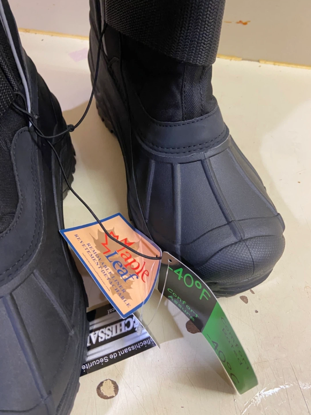 Brand new Maple Leaf winter boots! These black boots are ready to keep your feet warm and cozy during those cold winter days. They feature a removable liner and are comfort rated to -40°F