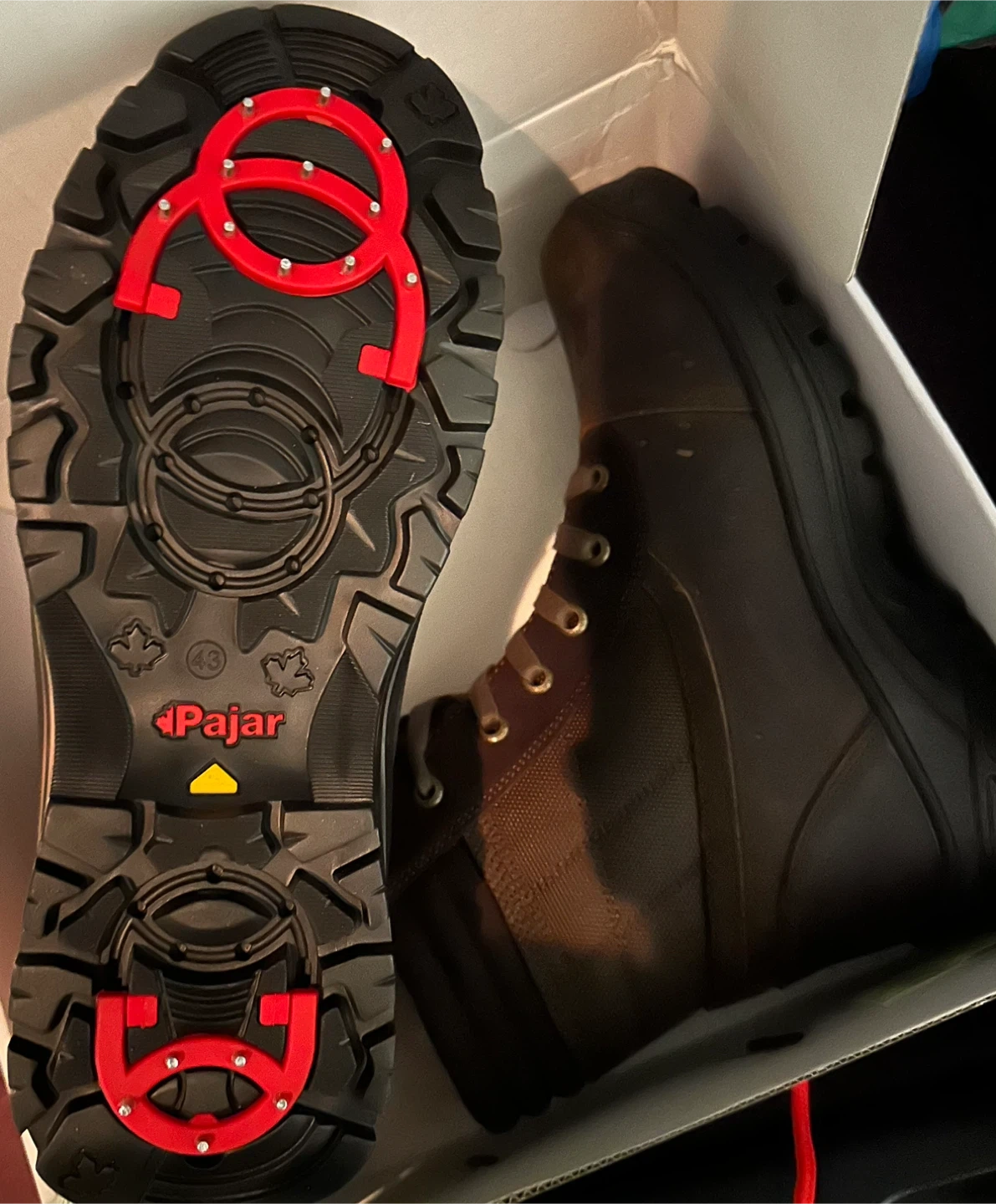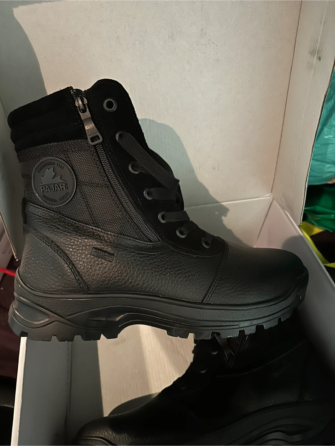 Selling a pair of men’s leather Pajar Trooper IG boots in brown or black .available in box .They are a men's size 43, which is equivalent to a US size 9. These boots have a medium width and feature a durable construction. The soles have great traction with the red ice grips, perfect for Canadian winters! Comes with the original box $80 each mimico pick up
