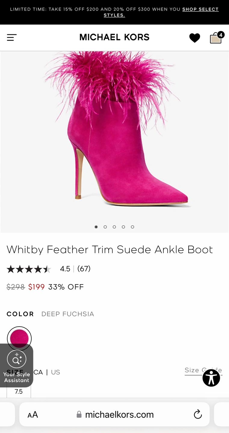 NEW Michael Kors Whitby Feather TrimSuede AnkleBoot 7.5