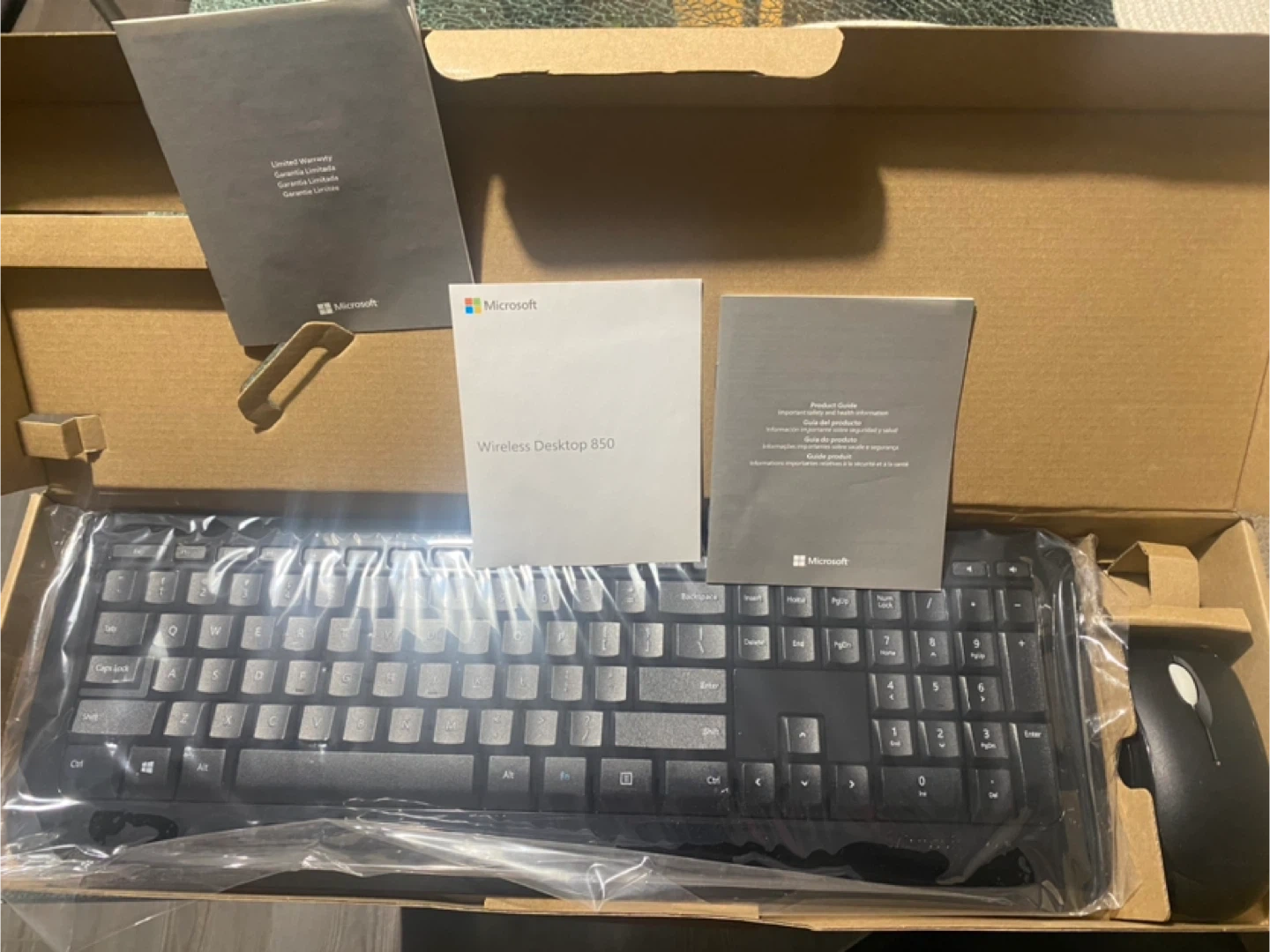 43Selling a brand new Microsoft Wireless Desktop 850 keyboard! It comes with the original box and includes the keyboard, mouse, and product guides. Perfect for setting up a new workspace or upgrading your current one.