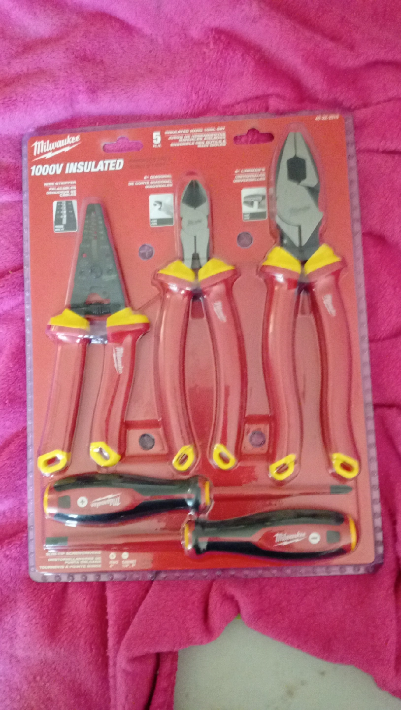 Selling a brand new Milwaukee 5-piece 1000V insulated tool set! This set includes insulated pliers and screwdrivers, perfect for electrical work. It's still in its original packaging and ready for a new home.