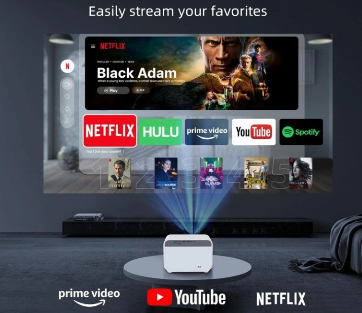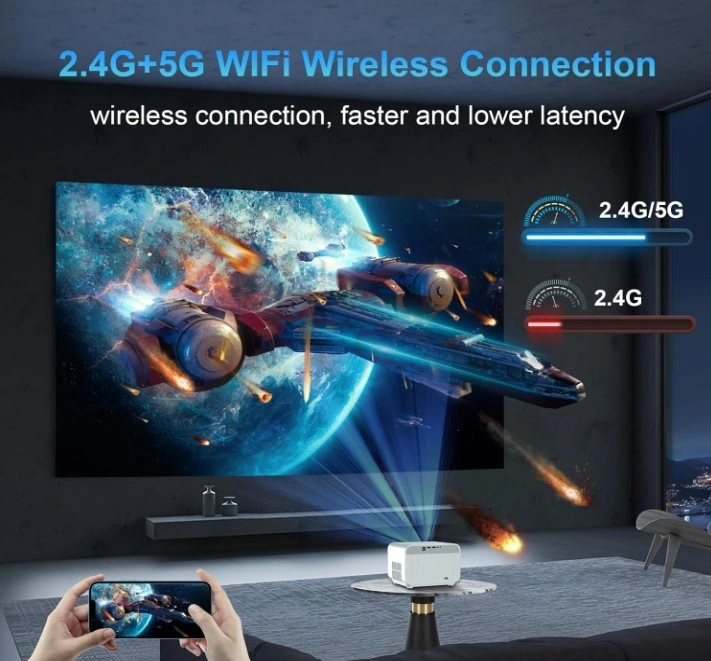 9500lm 1080P Resolution Support & Latest Chip FunFlix Home Projector Popularity is 9500 lumens and supports 1080P resolution. The projector ceiling uses an upgraded chip and is equipped with more professional video processing technology. It provides better color saturation and a high-definition, bright screen effect. The experience effect is best at night. Wide Compatibility & Convenient to Carry Various connection ports such as HDMI, USB, AUDIO, AV, etc., can be widely used for smartphones/PC/DVD player/laptop/TV Stick/PS4/PS5/USB disk/SD card, etc. iPad, iPhone, Android, and smart phones are also applicable. Smartphones can also be used with this product. (Note: An HDMI conversion adapter is required when connecting to a smartphone/tablet.) The mobile projector is lightweight and compact, making it easy to carry in a bag. It can be large. Dustproof & 270" large screen & protect your eyesight The large 270" projection screen provides a realistic viewing experience. Short-range projection projector provides 35~ 270 inch projection size and projection distance of 1 m ~ 4 m for more perfect viewing. The diffusion lens spreads light softly and evenly. Efficiently cuts blue light, which is considered harmful to the eyes. Your eyes will not get tired even if you watch images on a large screen for a long time.