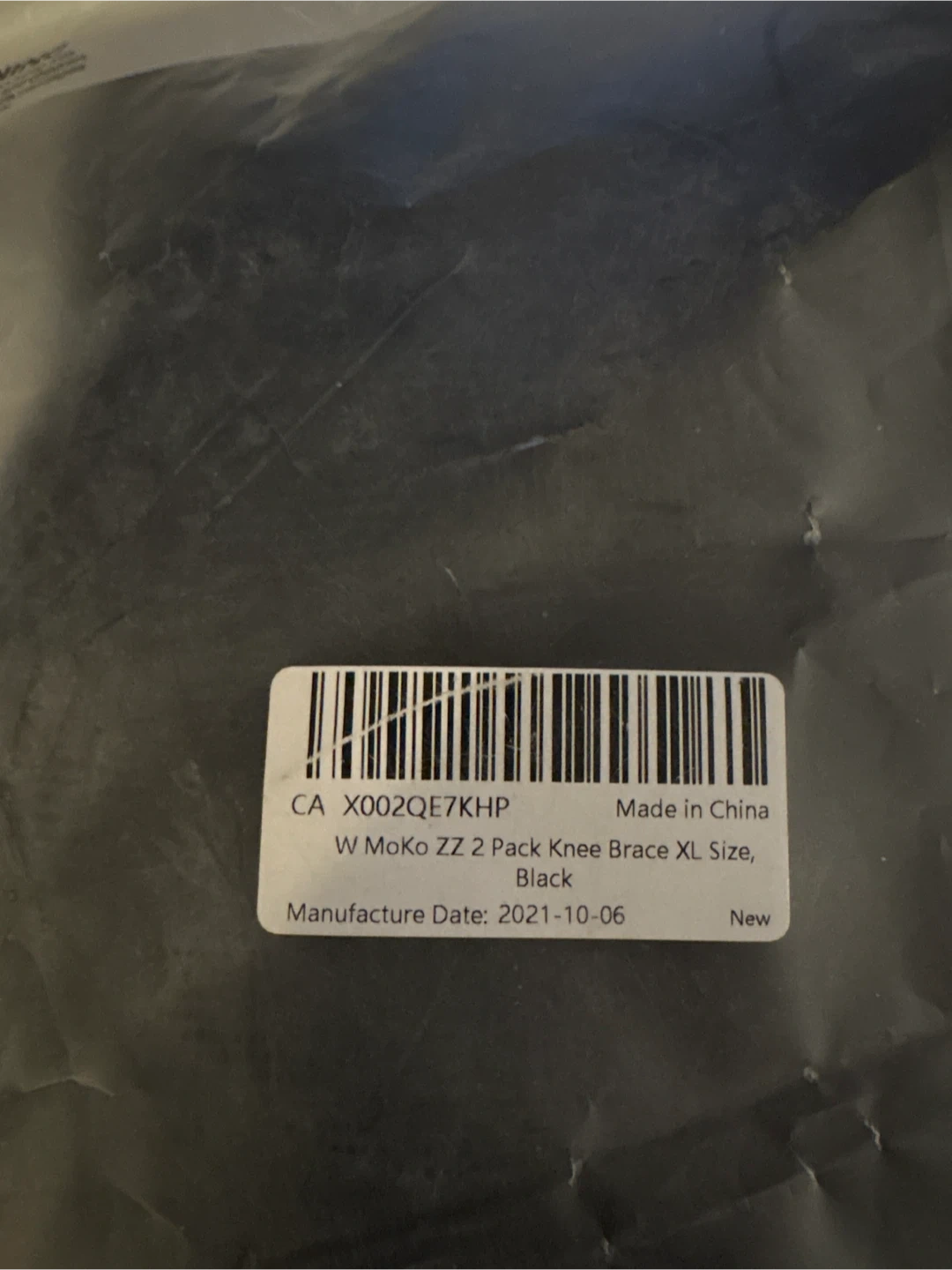 10I'm selling a new MoKo ZZ 2 Pack Knee Brace in size XL and black. The manufacture date is 2021 October 06. It's still in the original packaging!