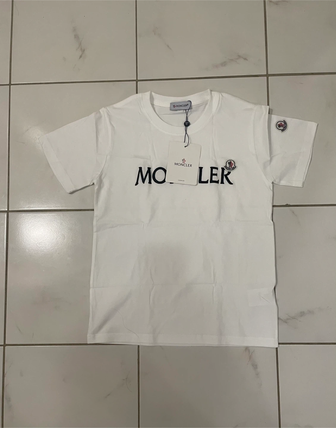 I'm selling a brand new Moncler t-shirt in white! It has the Moncler logo across the chest and on the sleeve. Never worn, still has the tags on it!