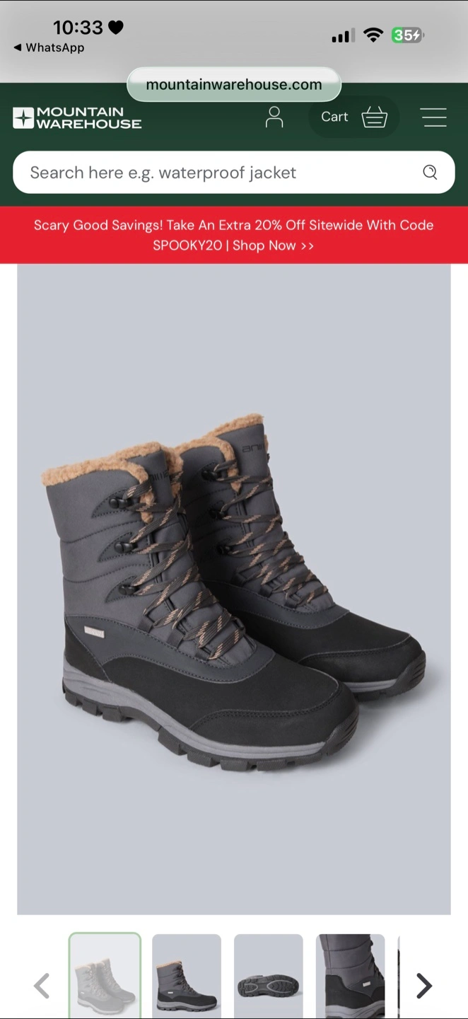 10Selling a pair of Mountain Warehouse Blizzard Waterproof Snow Boots for men. They are brand new, never worn, and in excellent condition. 🔹 Brand: Mountain Warehouse 🔹 Model: Blizzard 🔹 Size: us 8 🔹 Color: Grey 🔹 Fully waterproof and insulated, perfect for snow, rain, and cold weather. 🔹 Non-slip sole and comfortable fit for winter walks or outdoor activities.
