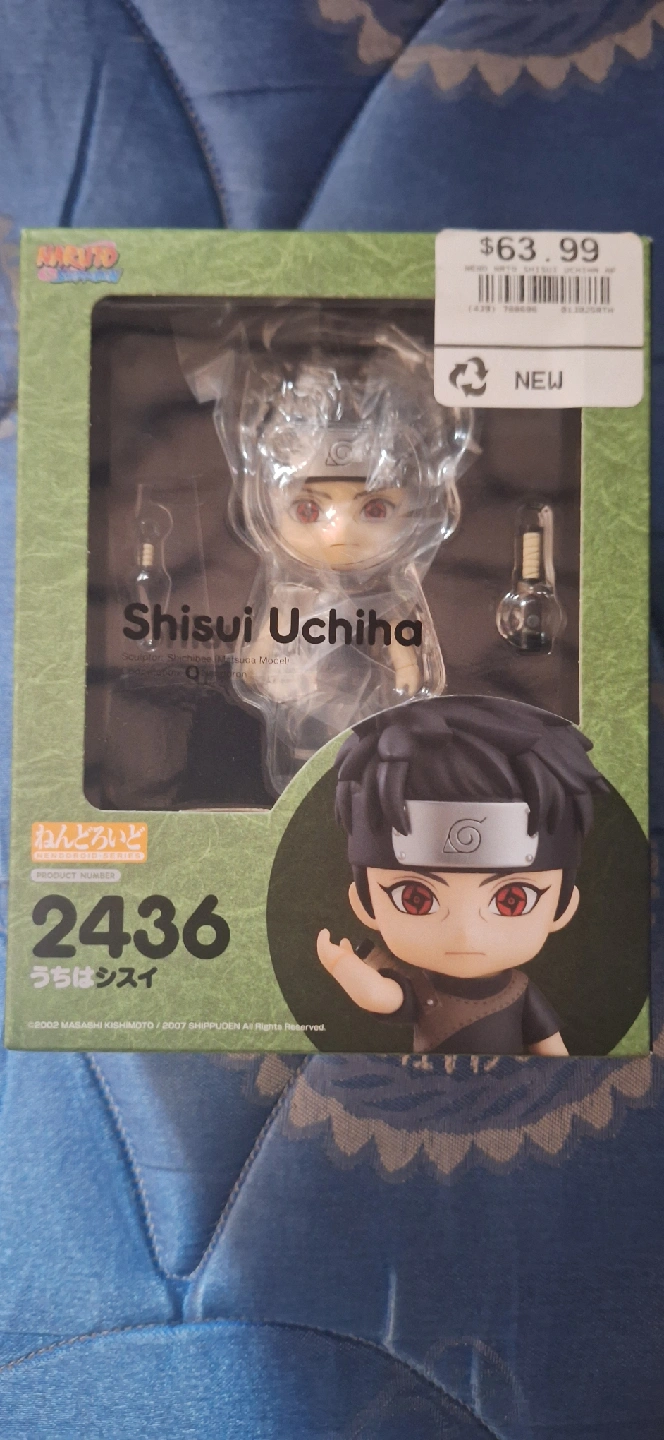10Selling a brand new Nendoroid figure of Shisui Uchiha from Naruto! It's number 2436 in the series. The original price tag shows $63.99. The product material is figure PVC and stand ABS. It's recommended for ages 15 and up
