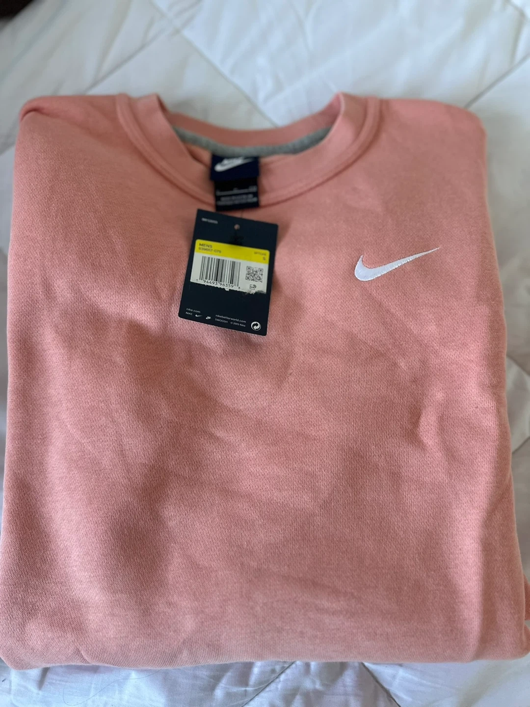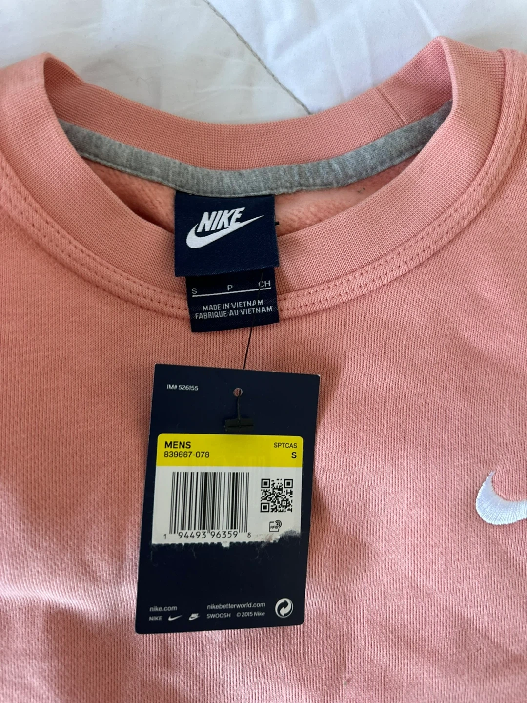 This is a brand new Nike crewneck sweatshirt in a lovely peach colour! It's a men's size small and has the classic Nike swoosh logo.