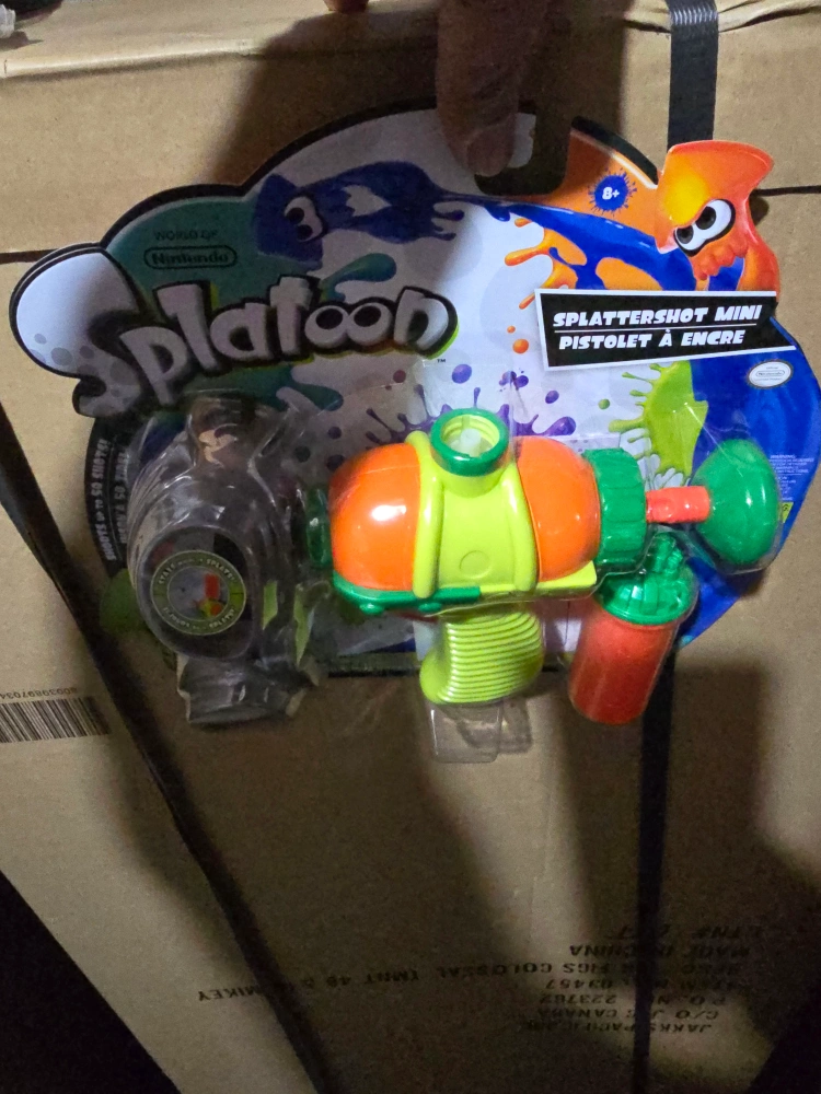 60Selling a brand new Splatoon Splattershot Mini water blaster! It's still in the packaging and ready for some summer fun. Recommended for ages 6+