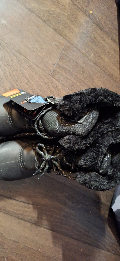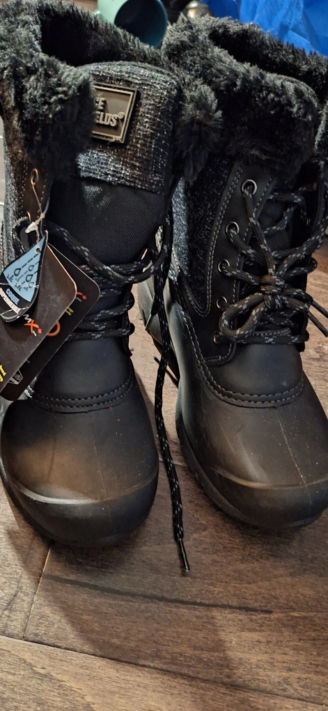 60These North Fields winter boots are brand new and ready for the snow! They're insulated and waterproof, perfect for keeping your feet warm and dry during the Canadian winter. They are black with a faux fur trim.