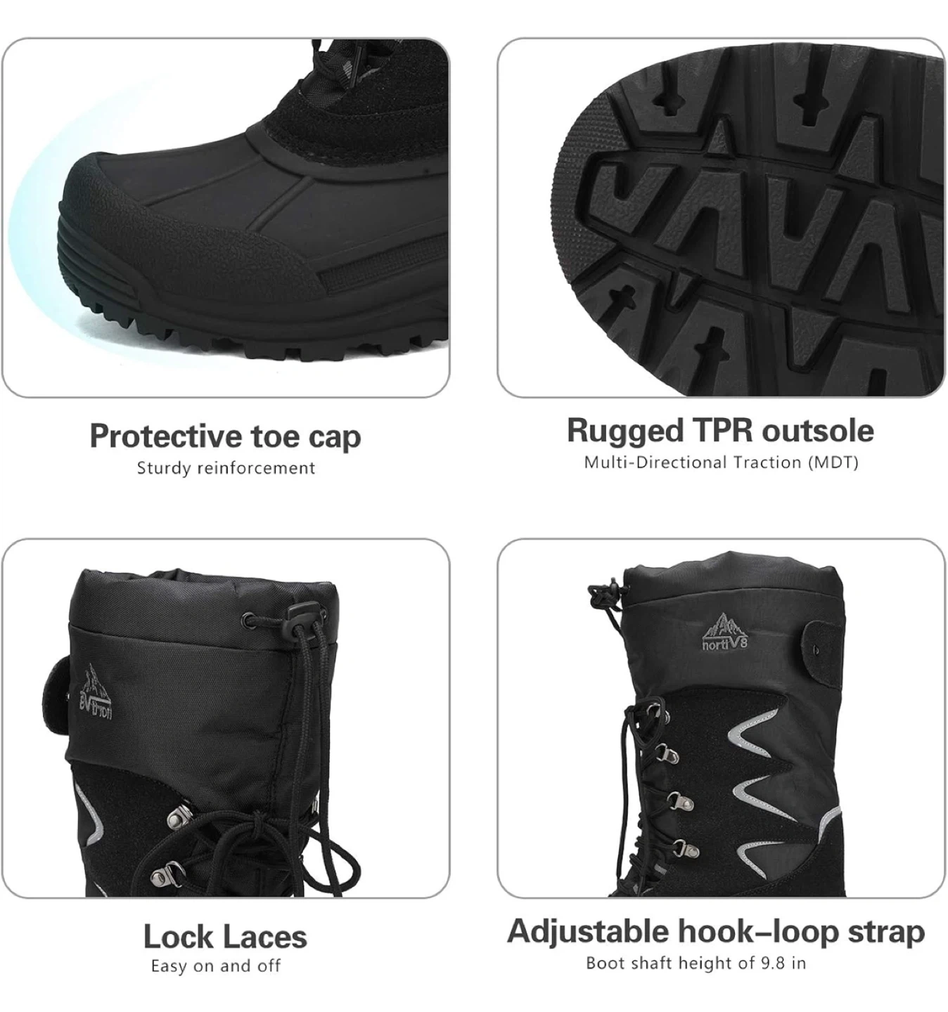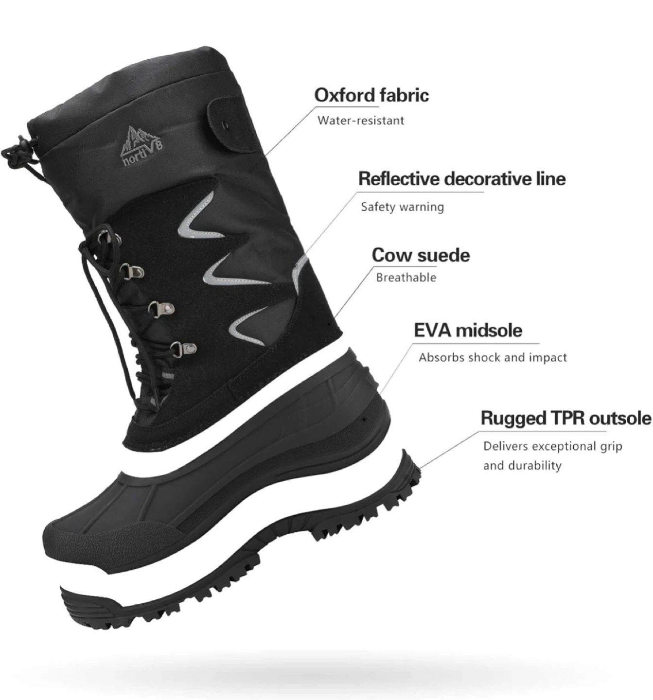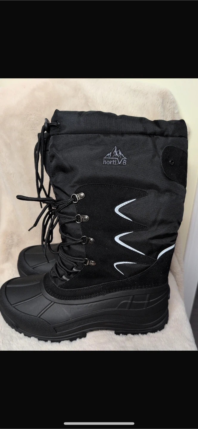 New! Retails for $86 Keep your feet warm this winter with these Nortiv 8 winter boots! These boots feature: - 3M Thinsulate insulation to keep your feet warm in temperatures as low as -25°F or -31C - Waterproof design - Oxford fabric (water-resistant) - Cow suede (breathable) - EVA midsole (absorbs impact) - Rugged TPR outsole (exceptional grip and durability) - Protective toe cap - Adjustable hook-loop strap - Lock laces for easy on and off The size is US 10 / EUR 43.5 / UK 9 / JPN 280 Premium material & convenience: Genuine fabric upper is for water & wind resistance. The reflective decorative line increased safety at night. Easy pull-on with both a drawstring and ankle strap 3 warming system: (1) Removable, warm cushion faux fur insole offers all-day support & comfort. (2) 200g high-quality cotton keeps your feet warm and dry even when the temperature is -25F. (3) An insulated warm comfy lining provides better protection in bad weather. Waterproof & protection: Seam-sealed, waterproof TPR outsole keeps your feet dry in wet conditions. Snow boots with a protective toe cap, the non-slip outsole is flexible in response to various outdoor terrain. Perfect for outdoor & indoor: Designed for both daily life in winter and outdoor sports like skiing, snowmobiling, ice fishing, outdoor party, and so on.