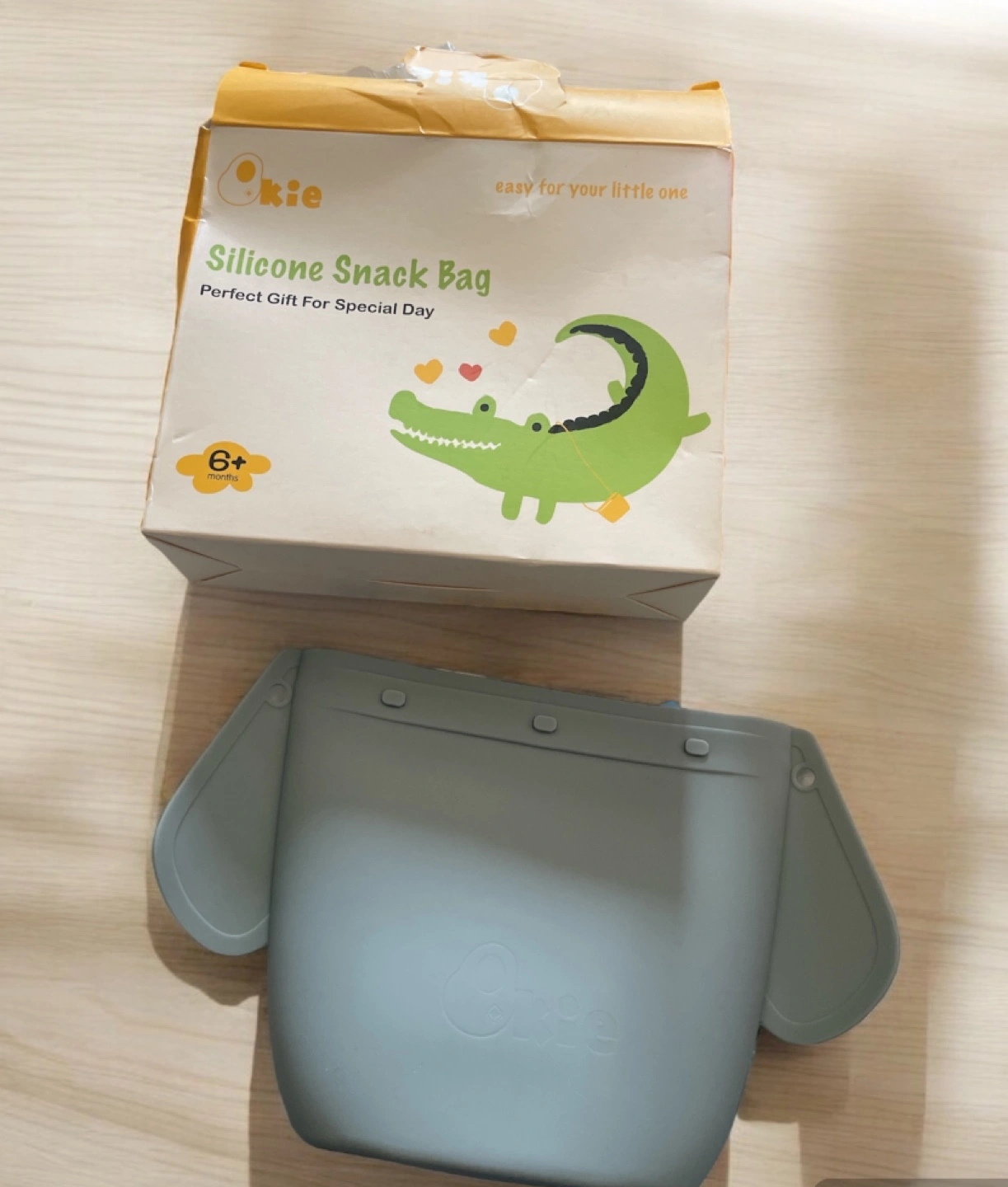 A blue silicone snack bag in original packaging. Brand new From Smoke free household