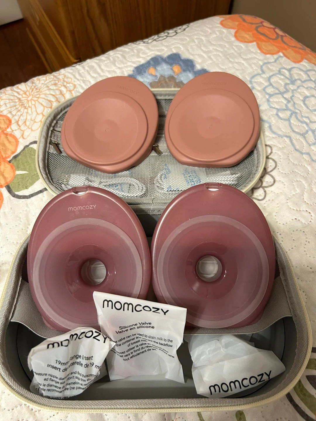 Selling a Momcozy Breast Pump Hands Free Mobile Style M6 in Cozy Red! This wearable breastfeeding pump is designed for more milk, with a DoubleFit Flange for a better fit. It's discreet and has 3 modes and 9 levels. Comes in a 2-count set. New opened box condition. You can turn it on before you purchase to see it works