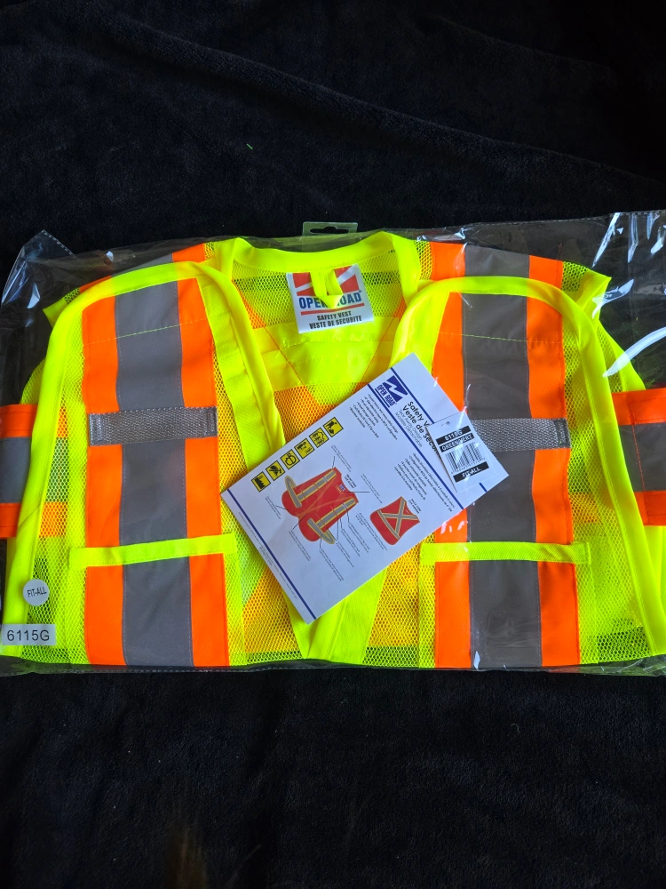 Selling many different types of safety vests. Brand new, various colours and styles. Perfect for construction, traffic control, or any job requiring enhanced visibility. Price depending on the Vest style $5-$25
