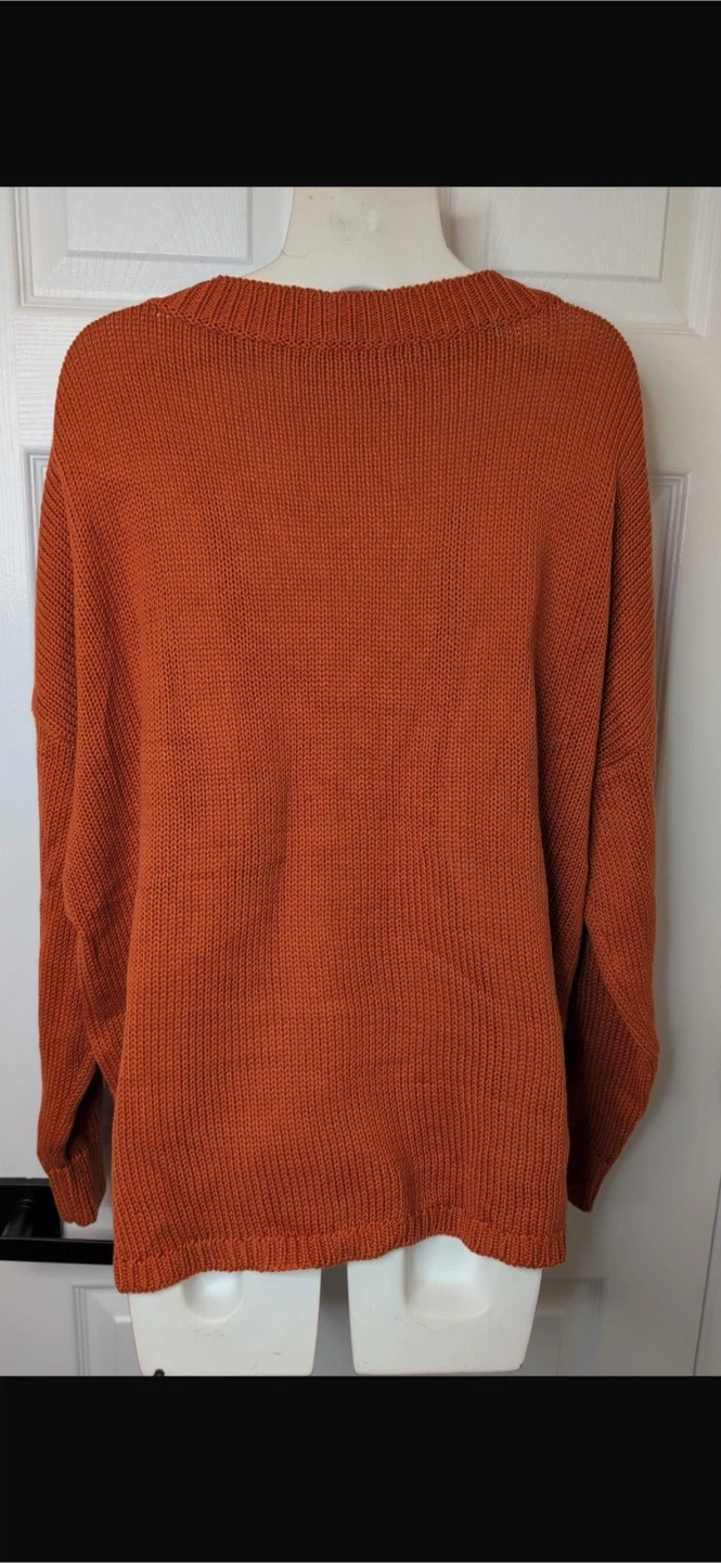 Show allNEW! Orange Knit Drop Shoulder Sweater - 2XL