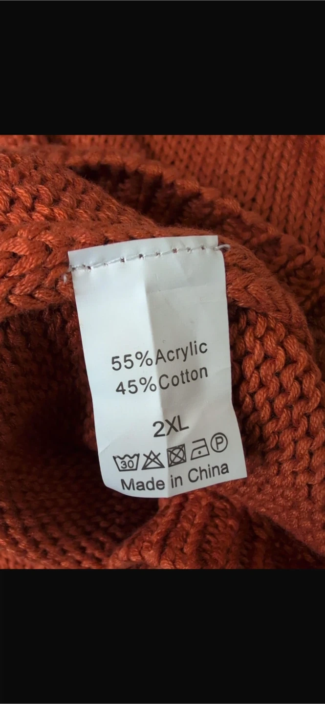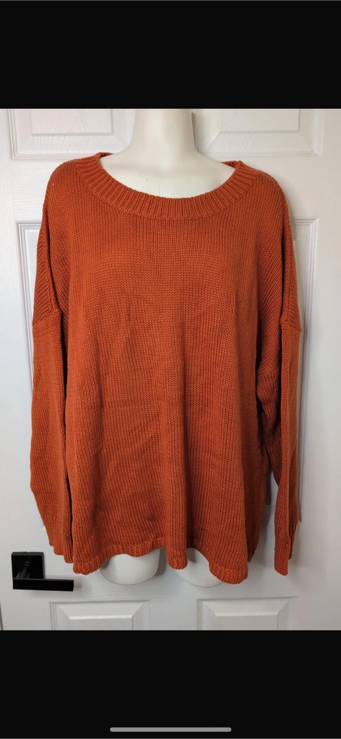 23New! Retails for $88 Cozy orange knit sweater in size 2XL! It's made of 55% acrylic and 45% cotton, so it's nice and soft. Perfect for staying warm on chilly days Novelty knit structure Ribbed hem and cuffs High stretch