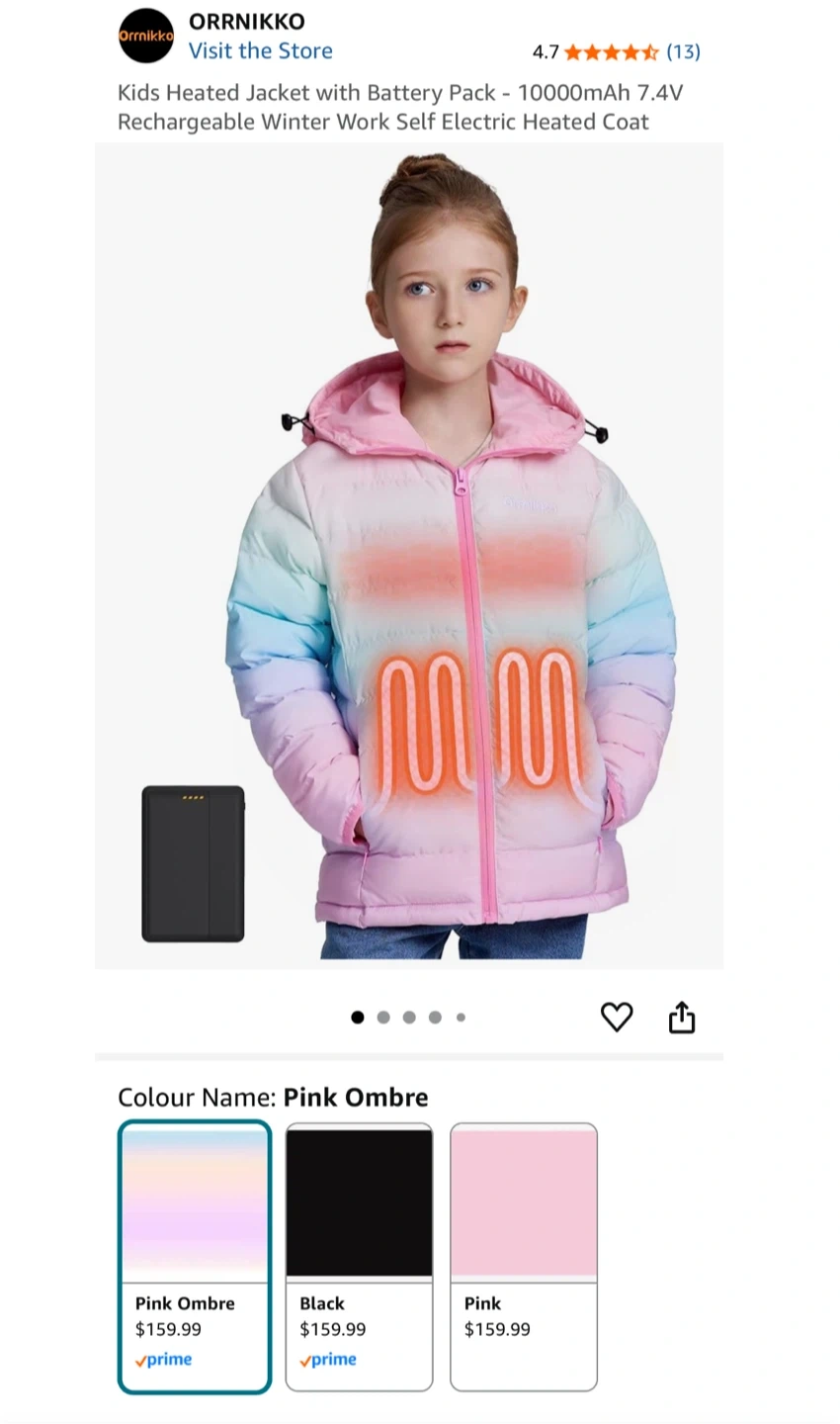 New! ORRNIKKO Kids Heated Jacket - Pink Ombre