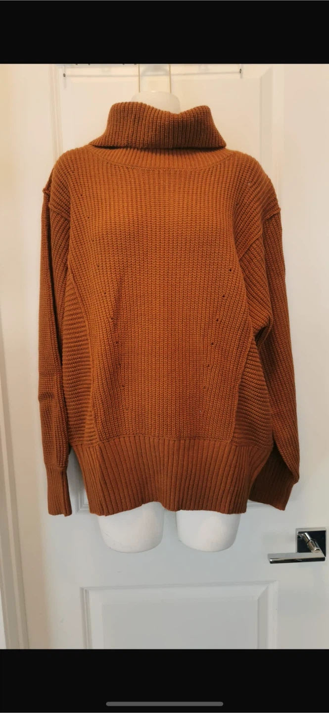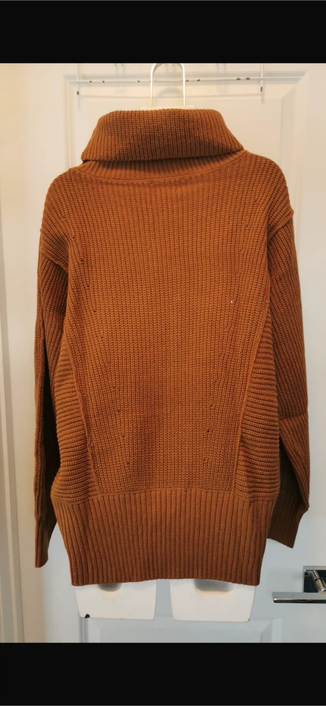 23New! Retails for $68 Cozy up in this stylish brown knit turtleneck sweater! It's perfect for those chilly Canadian days. The sweater features a comfortable turtleneck and a relaxed fit. It appears to be in good condition, ready to be added to your wardrobe