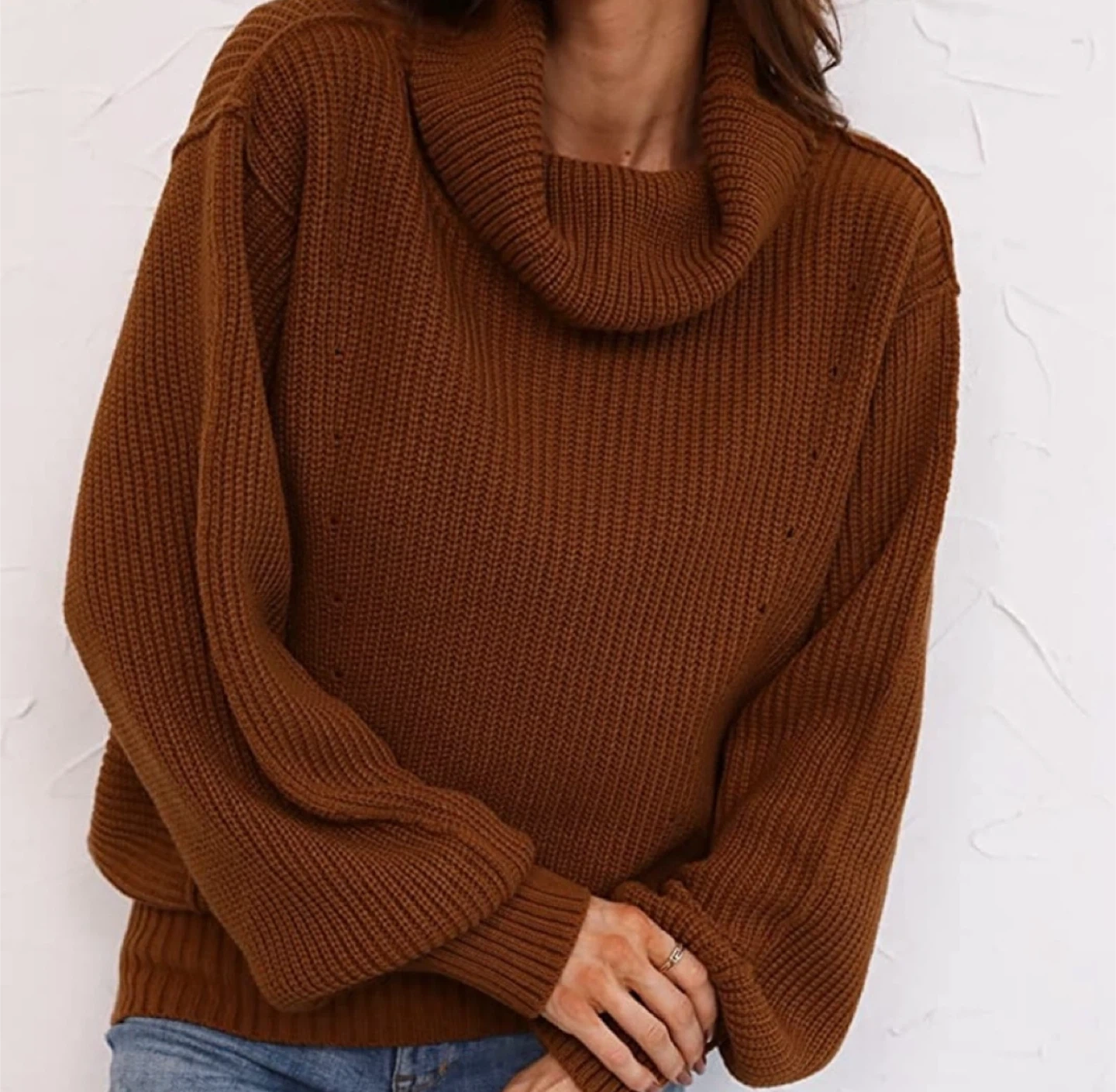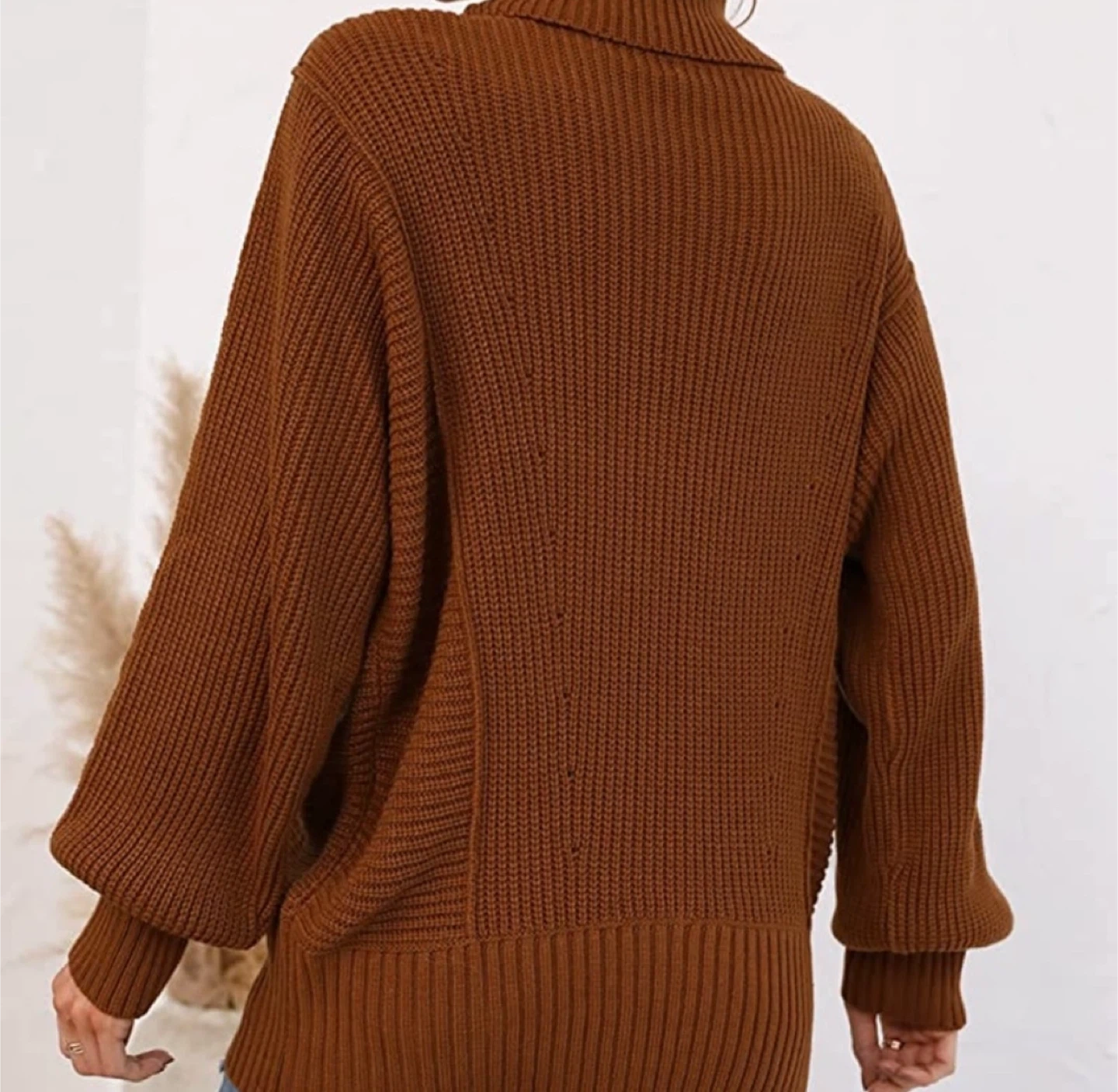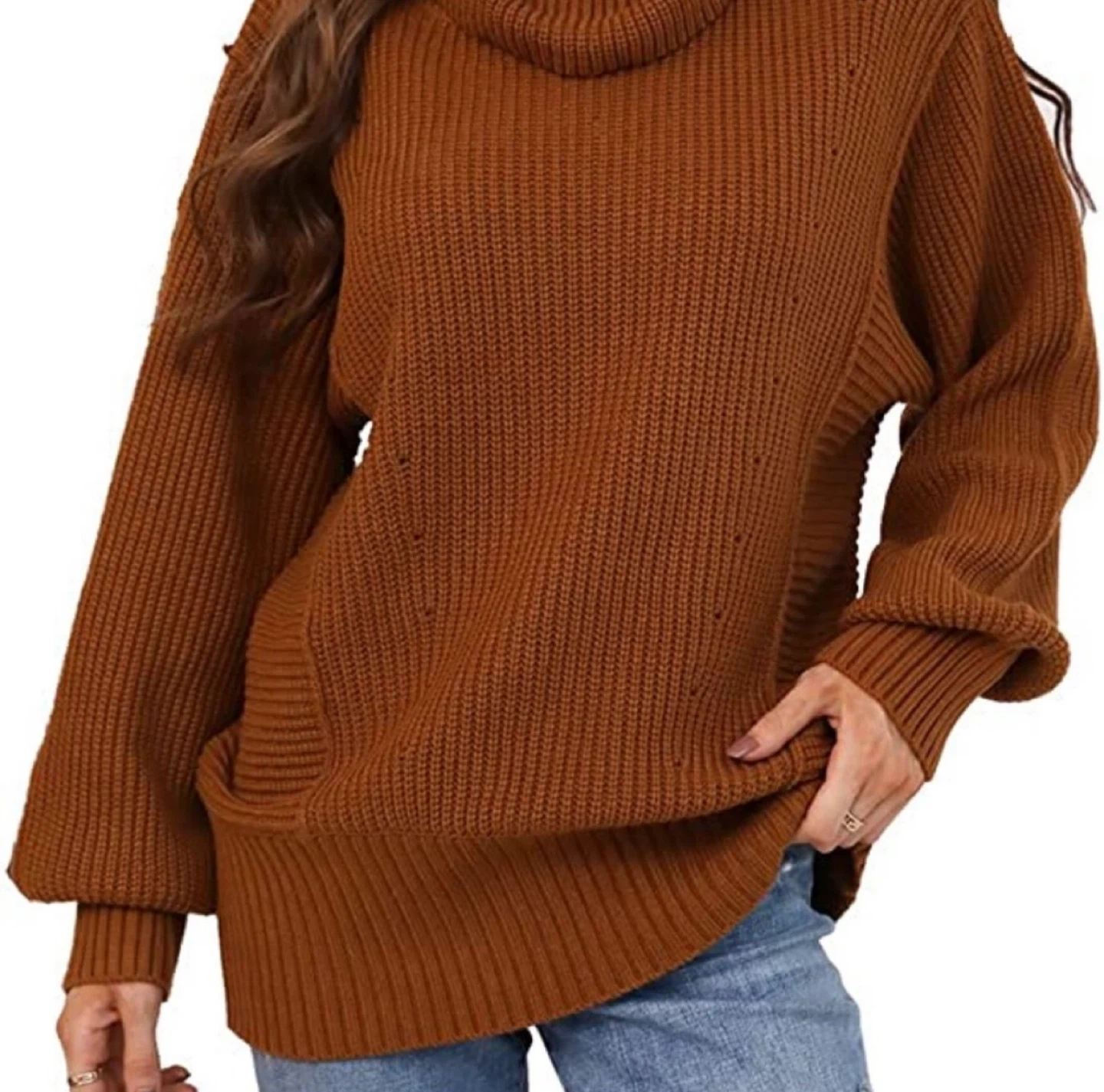 NEW! Oversized Brown Knit Turtleneck Sweater