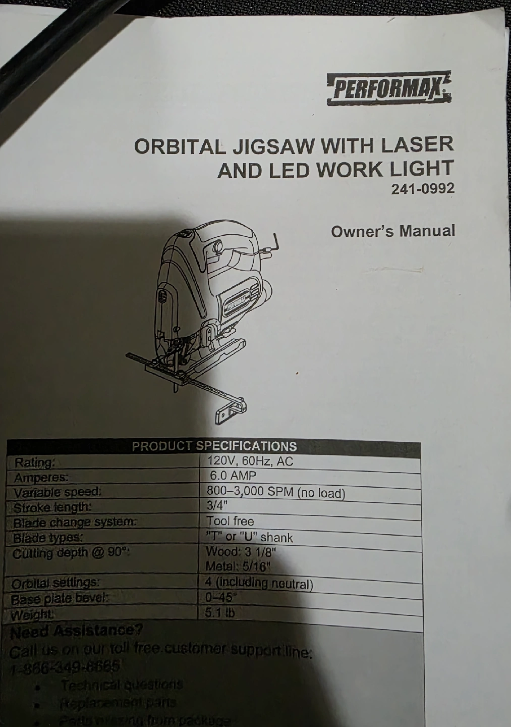 New Performax Orbital Jig Saw With Laser And LED Work light