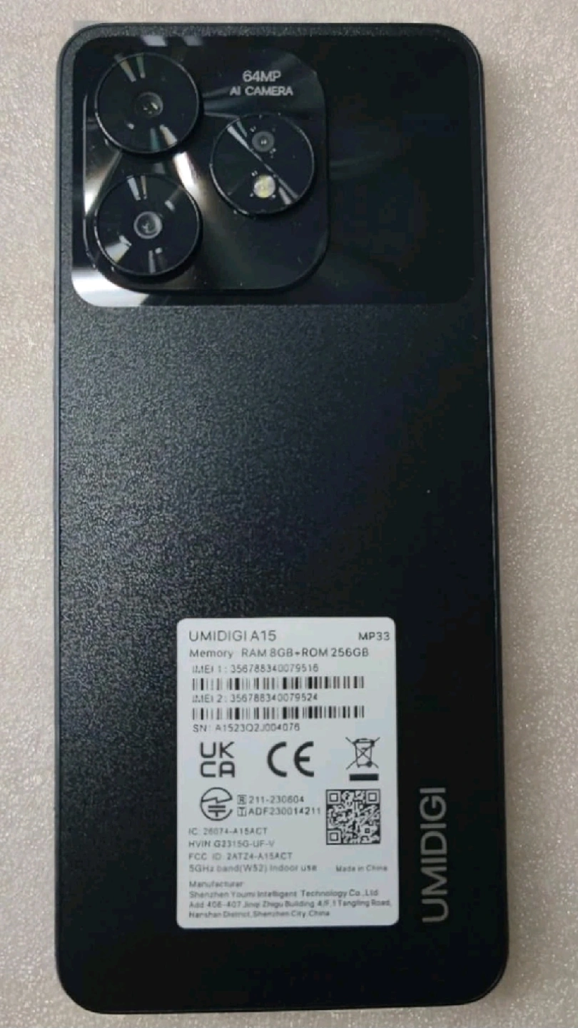 New in seal.(The first photo is taken from a sample phone) Model: UMIDIGI A15 6.7 inches 720 x 1650 IPS touch screen. Powerful Octa-core (2x2.0 GHz Cortex-A75 & 6x1.8 GHz Cortex-A55) 8GB RAM / 256GB internal storage / microSDXC card slot. Triple back camera 64 MP, f/1.8, (wide), AF, Ultra-Clear AI 8 MP, f/2.2, 118˚ (ultrawide) 5 MP, f/2.4, (macro). Front camera 16 MP, f/2.2, (wide). Dual-band Wifi 802.11 a/b/g/n/ac Bluetooth 5.0 / GPS / FM radio. Fingerprint ID NFC (Near field communication) Supports Google Pay/Wallet etc USB Type-C charging and data port 5000mAh Lasting-Long Battery Android 13 2G/3G/4G/LTE mobile network. Support Dual-SIM card. Unlocked, can be used on any carrier.